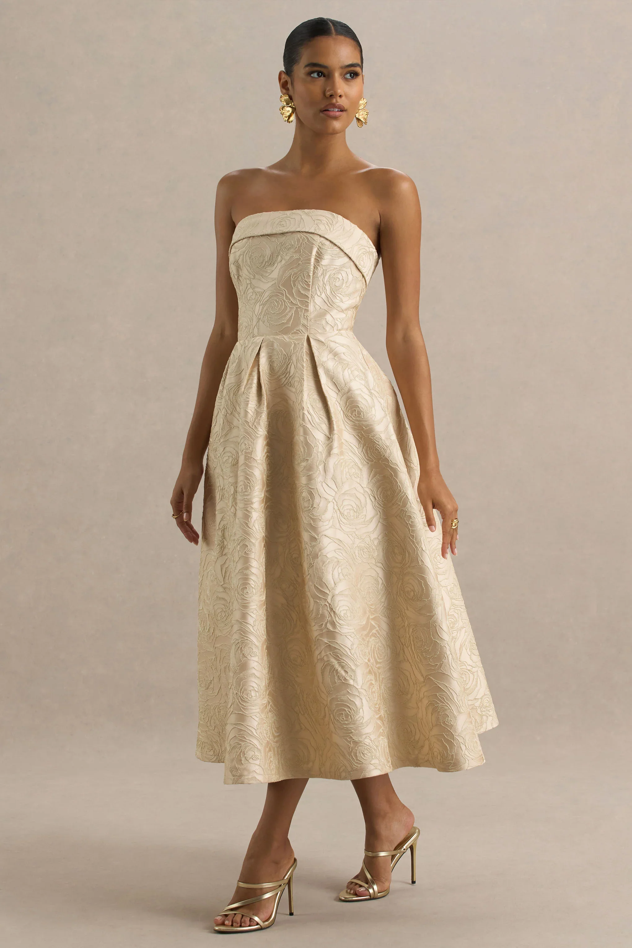 Hypnotic | Gold Jacquard Bandeau Midi Dress
