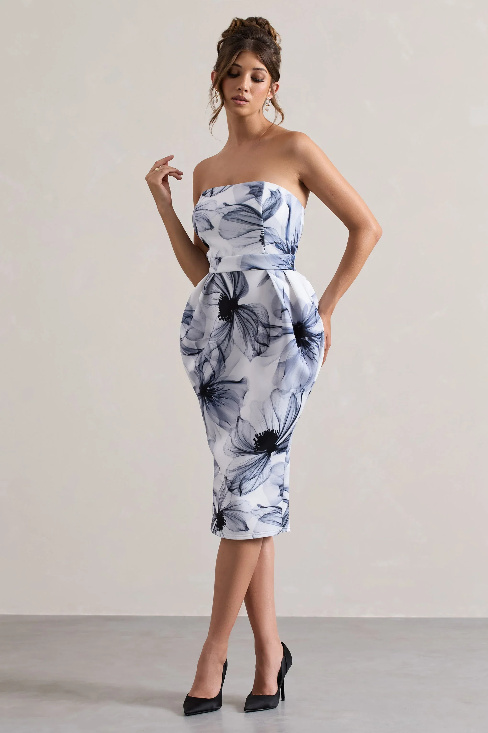 Chicago | Navy Bodycon Bandeau Midi Dress With Peplum Detail
