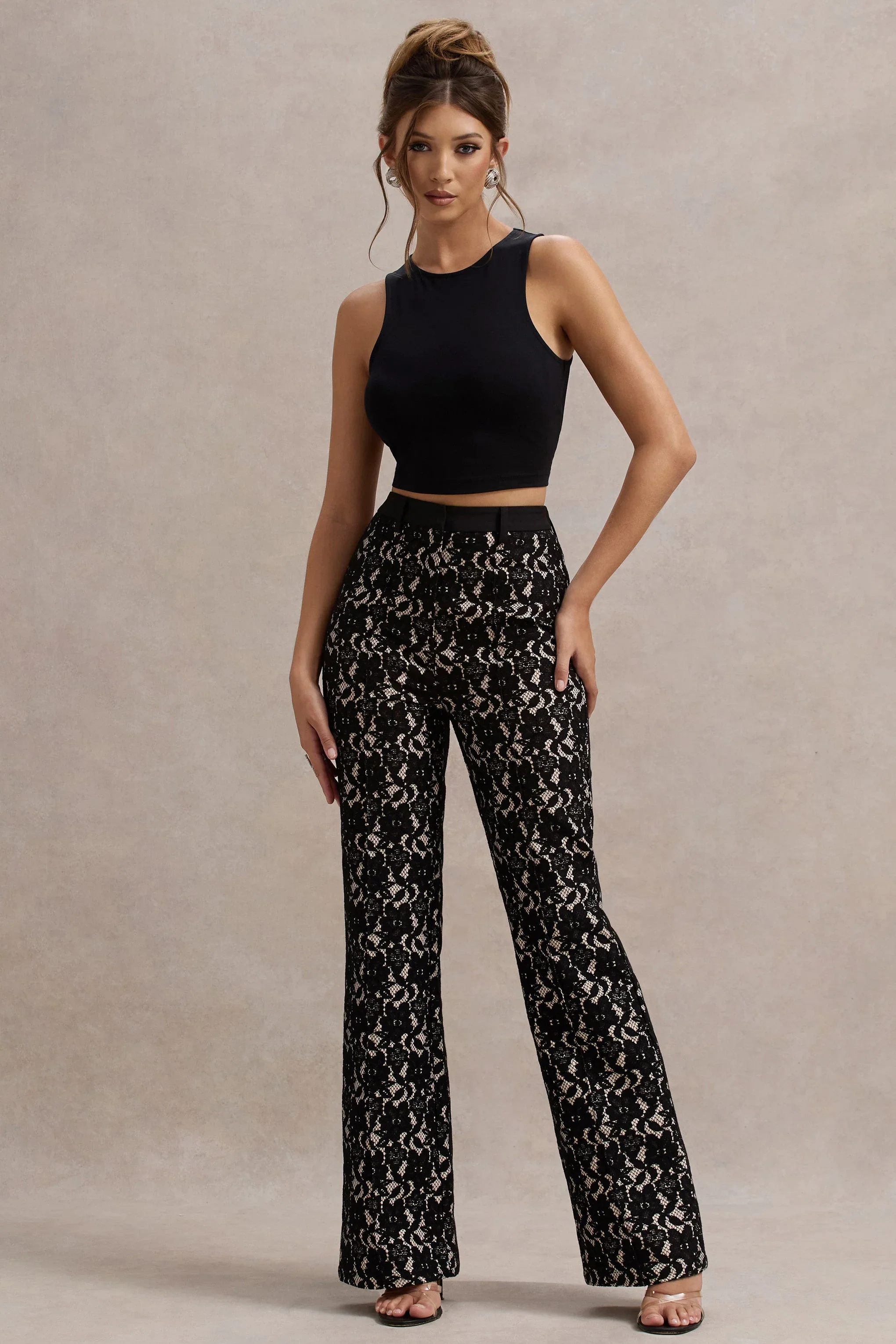 Jordanne | Black Lace Flared-Leg Trousers