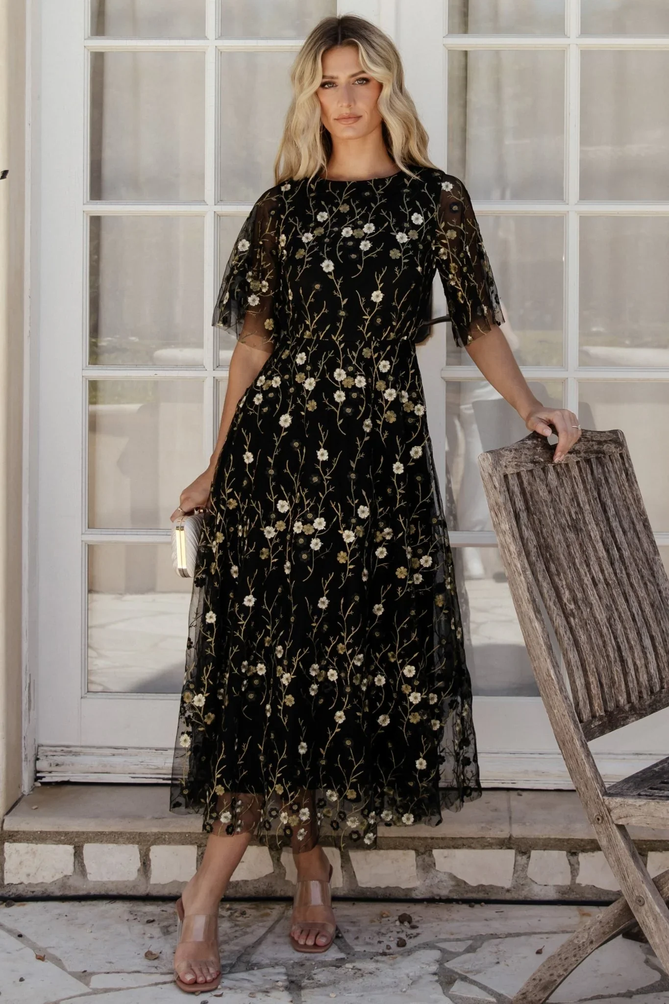Sadie Embroidered Midi Dress | Black + Nude