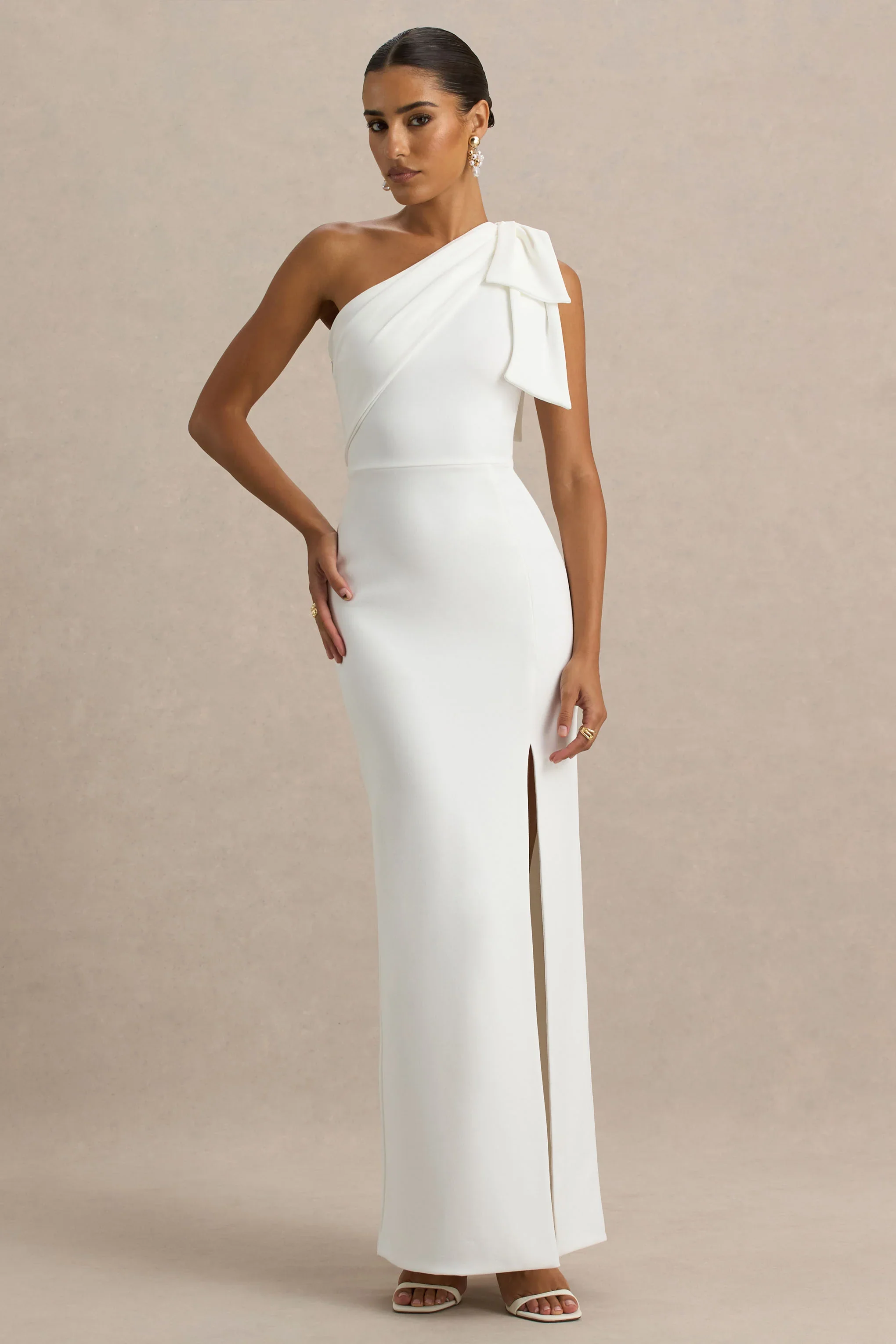 Kiri | White One-Shoulder Bow Maxi Dress