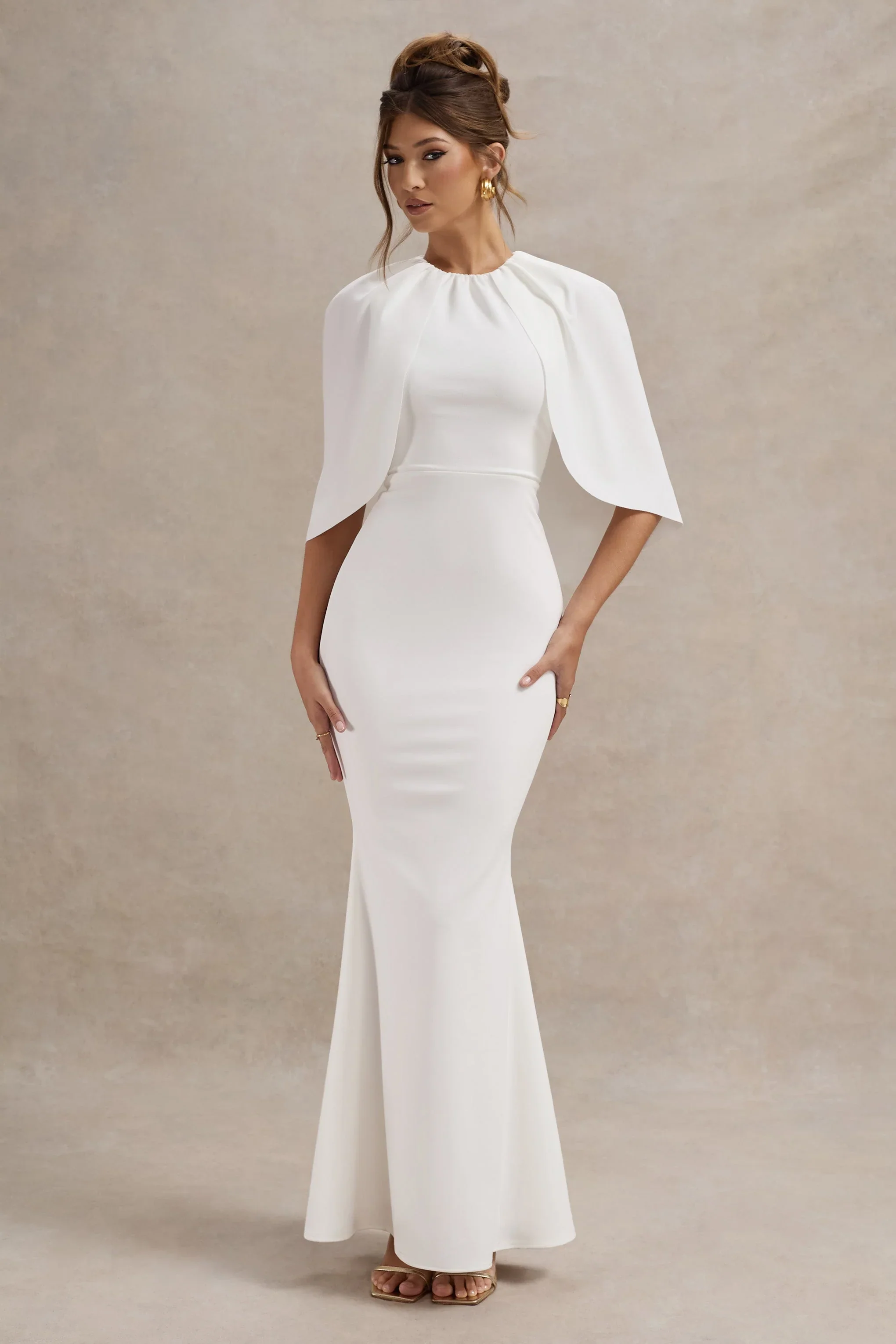 Leanna | White Straight-Leg Jumpsuit With Cape