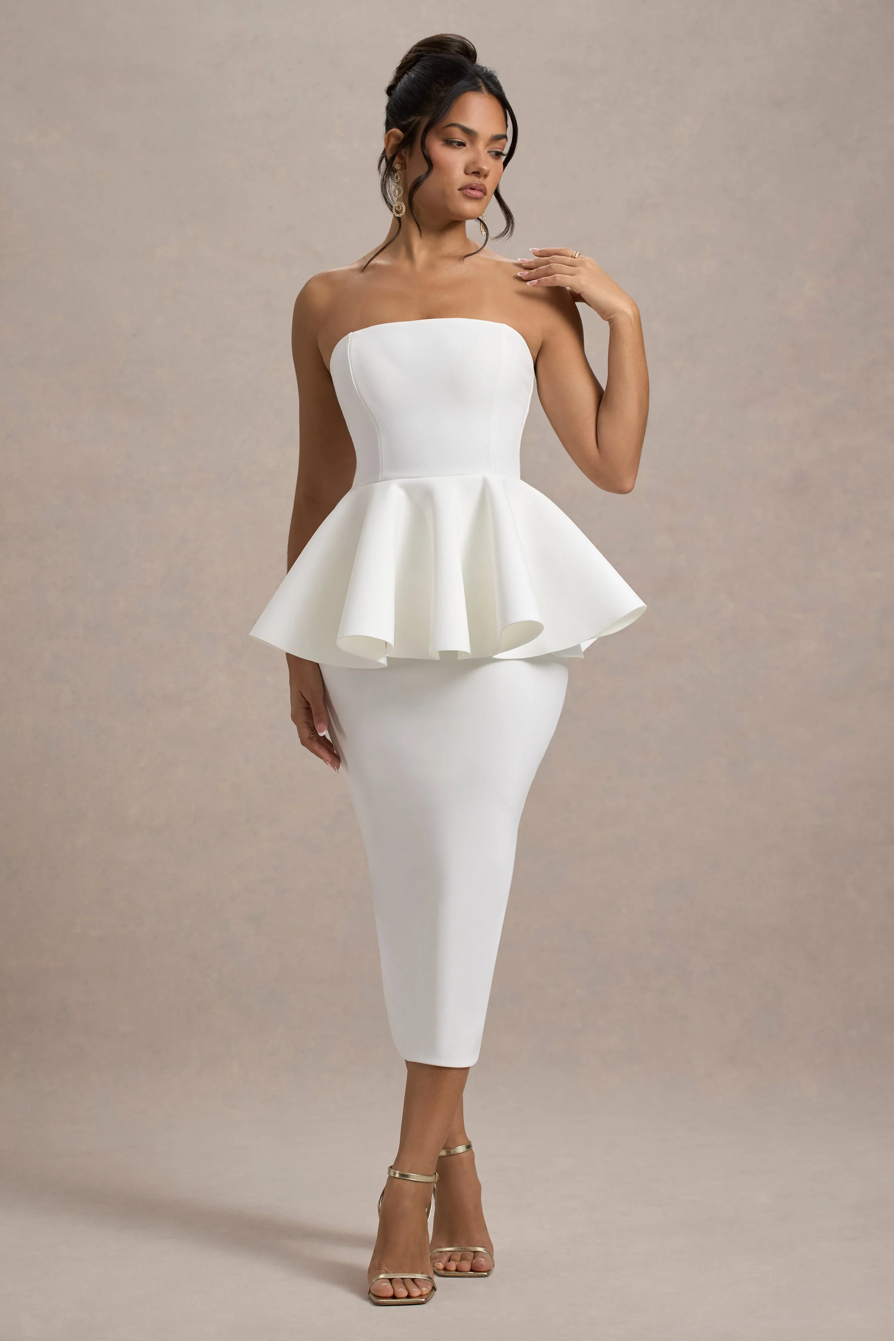 First Dance | White Bandeau Peplum Midi Dress