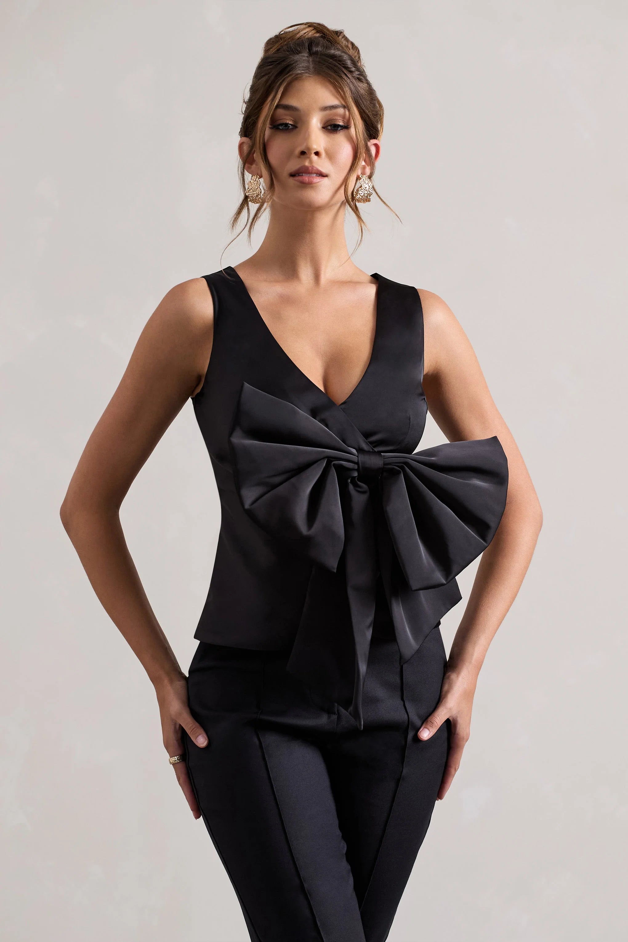 Perfect for those last minute plans, Adoration is a versatile addition to every wardrobe. Crafted in classic black shade of our signature shimmering satin, this formal top features a plunge neckline, v back and eye-catching bow detail that rests in the centre of your waistline.