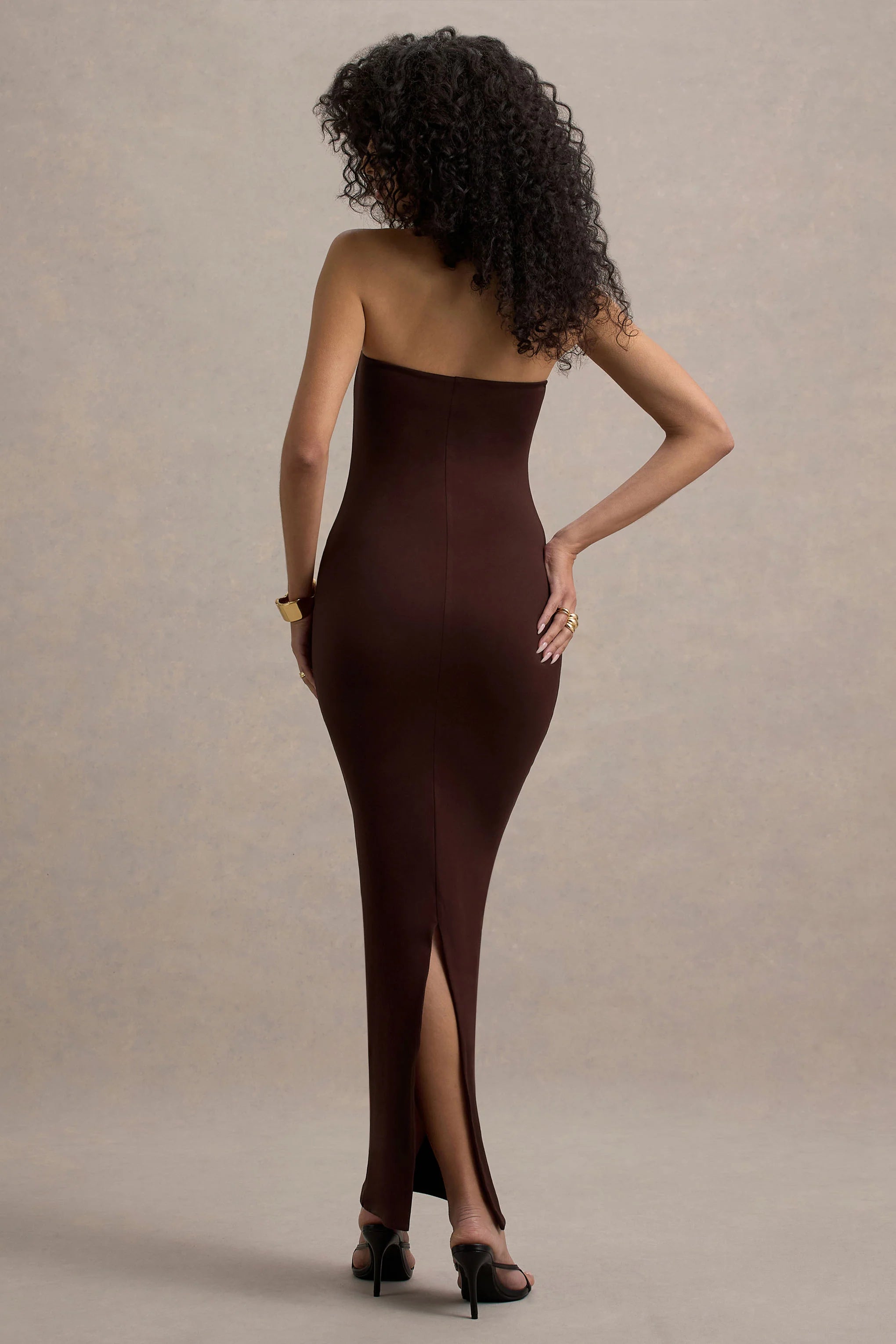 Striking in its simplicity, Angelie was designed to stand the test of time. Arriving in a curve-enhancing silhouette of our dual-layered jersey, this brown maxi dress is proof that the most simplistic styles can have the most impact.