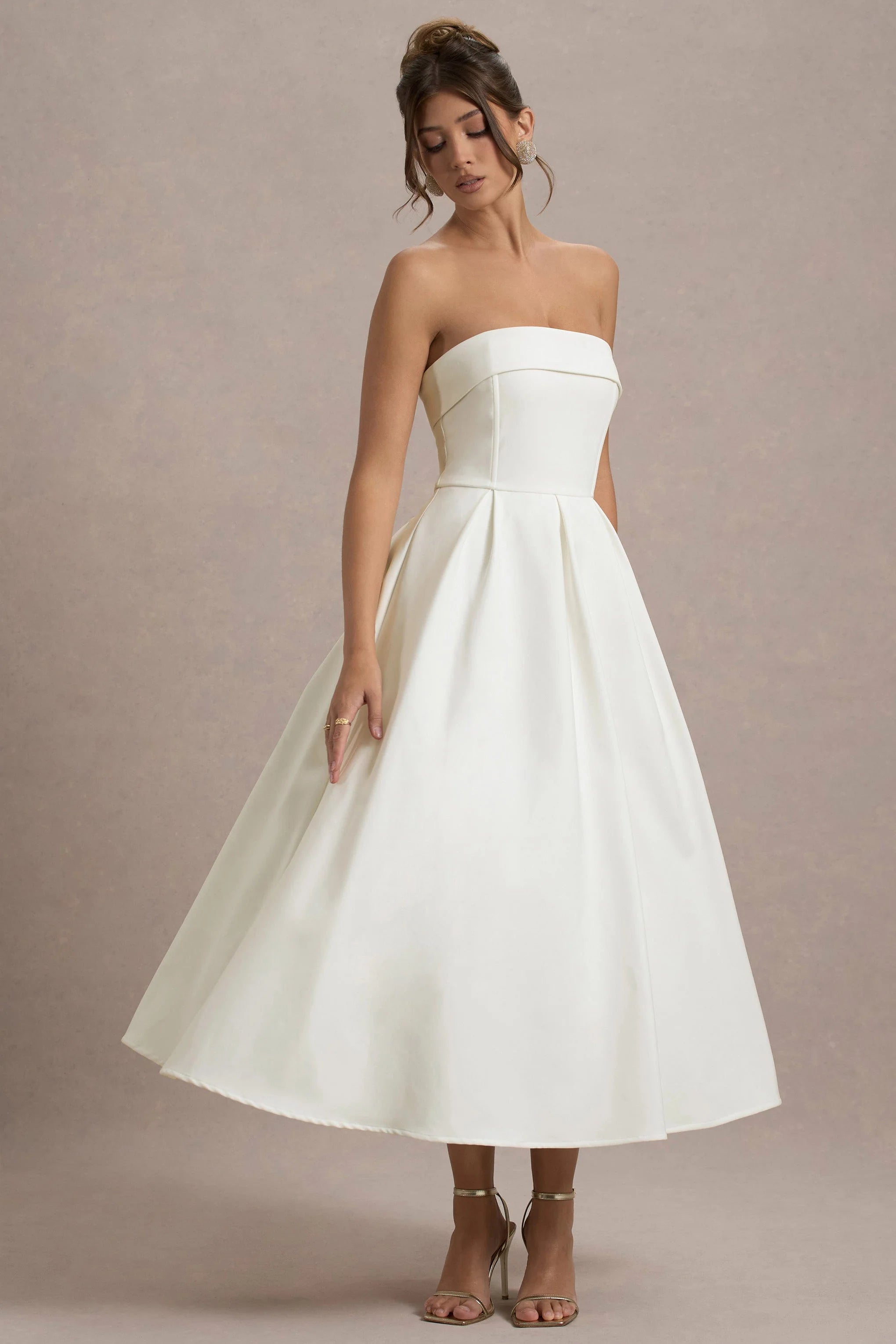 You name the occasion, we have the perfect dress. Crafted in an ecru shade of our premium stretch crepe, Annalise effortlessly compliments every skin tone. Beautifully flowing with a cinched in waist, this midi dress boasts a pleated skirt that creates an elegant sense of movement. For a timeless race day look, try styling yours with some simple gold earrings and strappy stilettos.