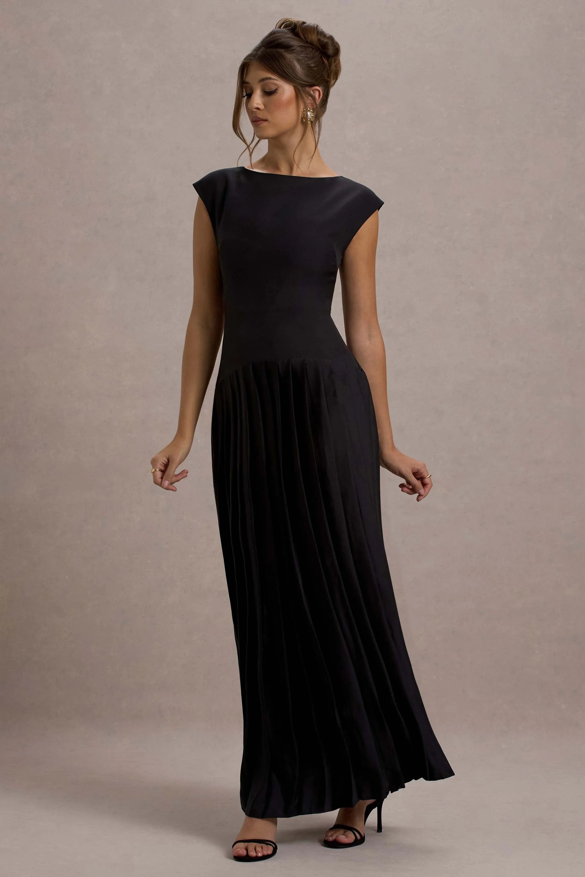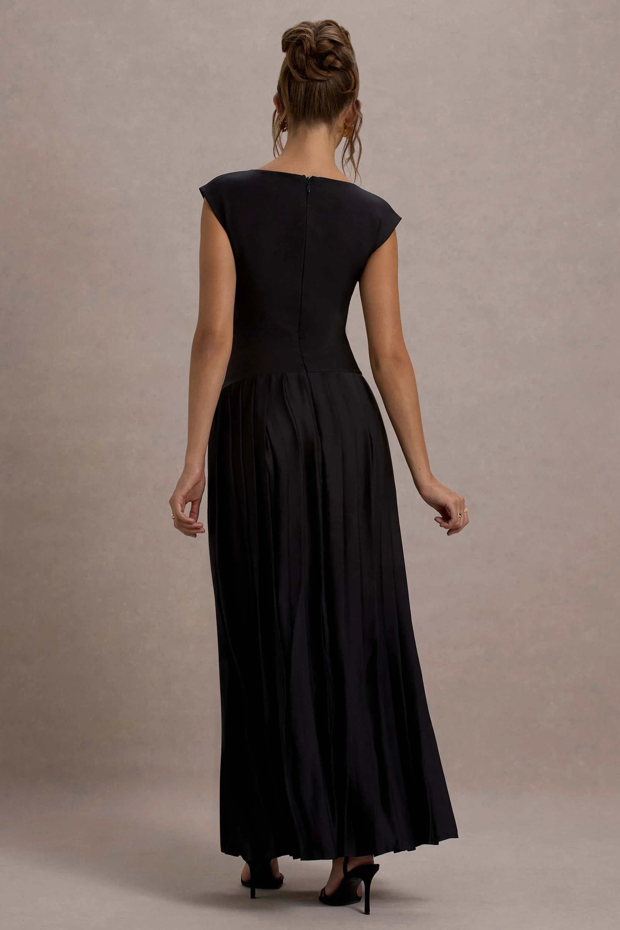 Offering up a polished and luxurious look, Arna is the ultimate occasion maxi. Expertly designed in a timeless black silhouette of our premium crepe, this floor-sweeper boasts a boat neckline, cap sleeves and satin pleated skirt. Compliment this stand-out staple with some glistening gold accents at your next event.