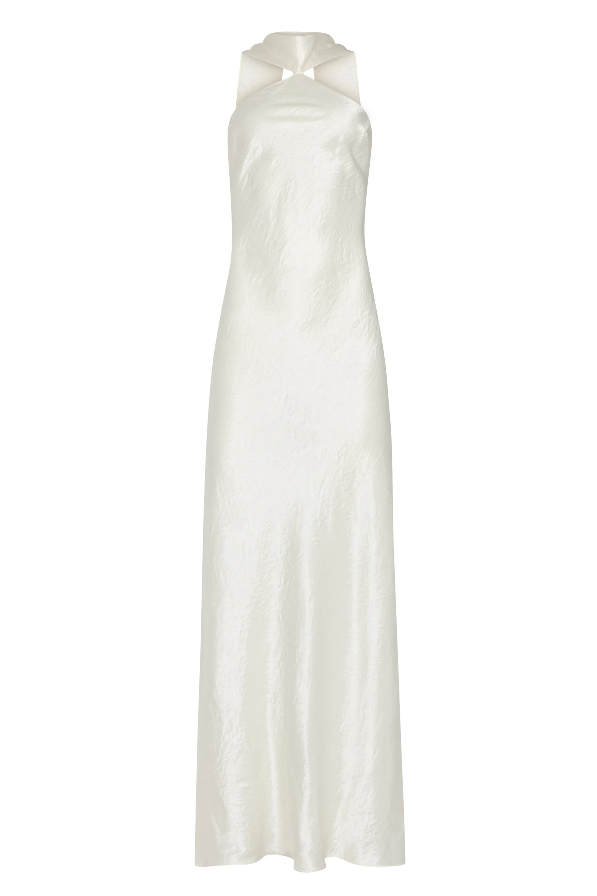 Leave your mark in the Ashton Maxi. Featuring a scarf-like neckline that drapes gracefully down your back, this textured satin dress is made for grand entrances. Pair with gold strappy heels for a fun yet elegant look.