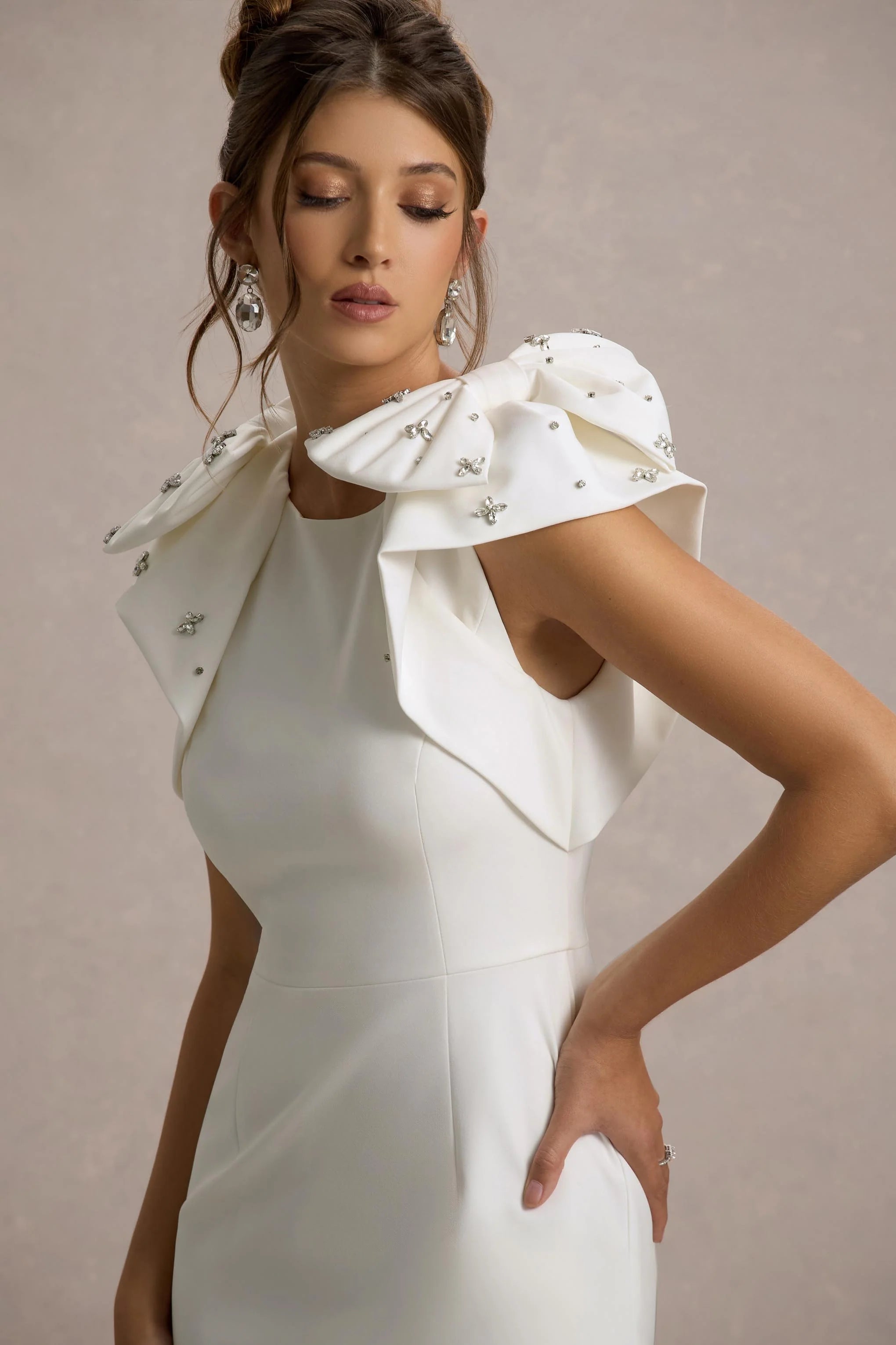 - Embellished bow shoulder details