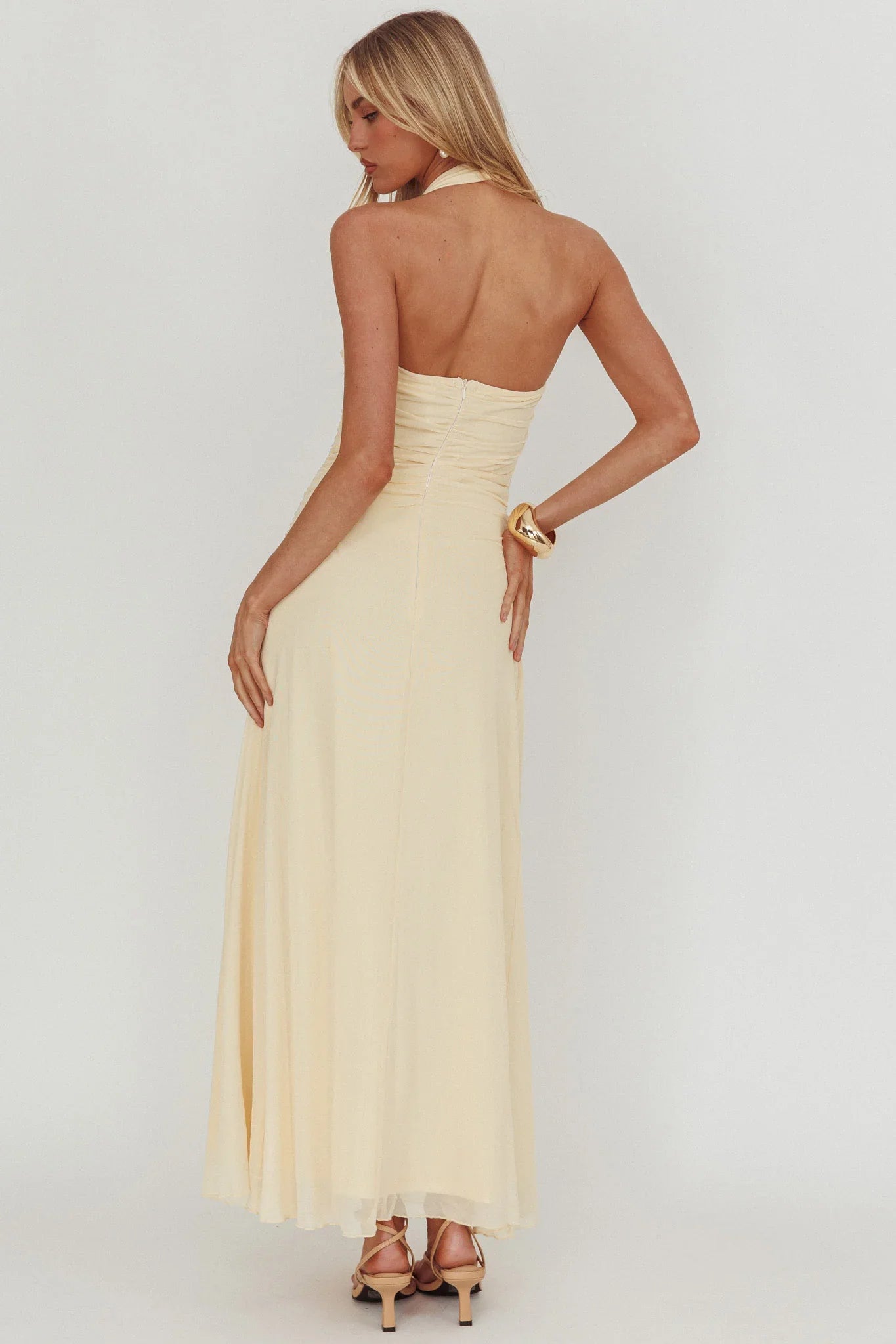 Turn heads in our gorgeous Azure Sun maxi dress. We are loving its asymmetric drop waist and gold decoration detail in the neckline. Perfect for a wedding or special event. Team it with strappy heels and a clutch for an unforgettable look.