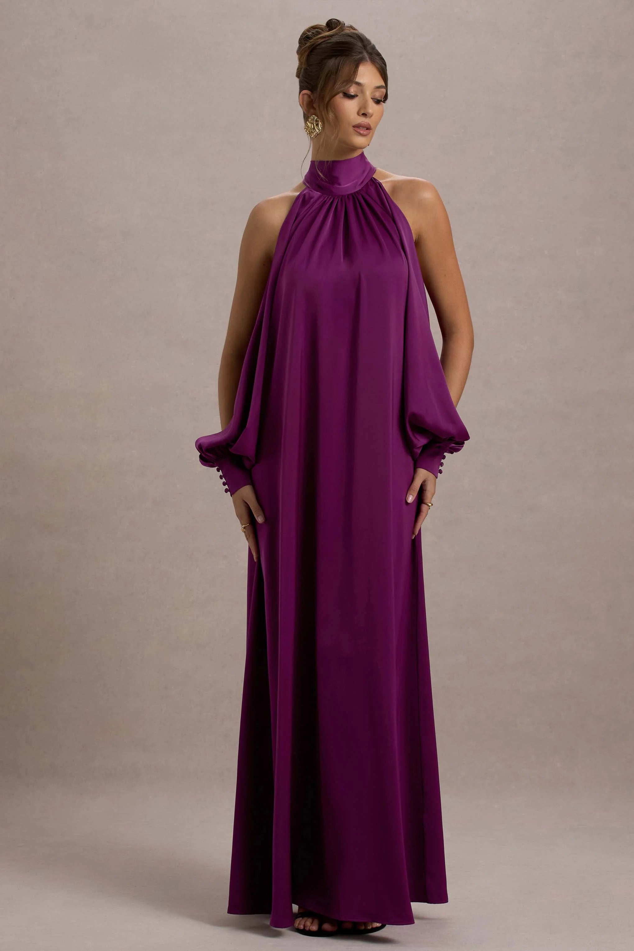 Baila is an elegant and striking choice for your next special occasion. Crafted from premium mulberry satin, this high-neck maxi dress exudes luxury with its fluid silhouette and rich sheen. The standout cape sleeves add a dramatic, ethereal touch, while the sleek fit beautifully skims your figure. Style Baila with strappy heels and minimal accessories to let this statement dress take centre stage at your next event.
