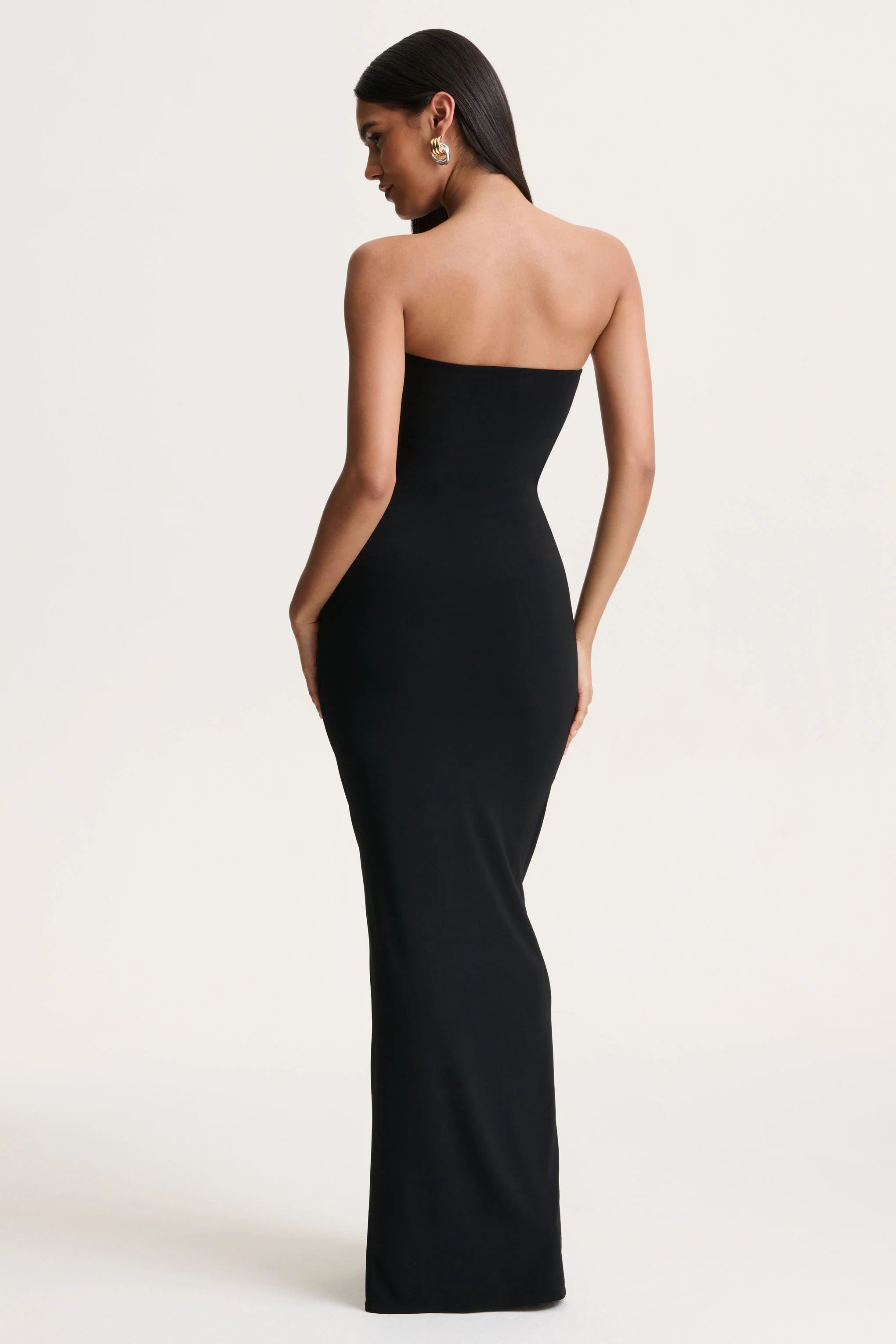 Sculpted and sleek, Beverly is the occasion-wear piece of the season. Designed in a rich black hue of our premium stretch jersey, this maxi provides a gorgeous feminine silhouette. The sweetheart neckline elegantly frames the decolletage whilst the gold-knot detail creates an hourglass silhouette, with a touch of glamour. From wedding guest to elegant date nights, in Beverly you won't be forgotten.