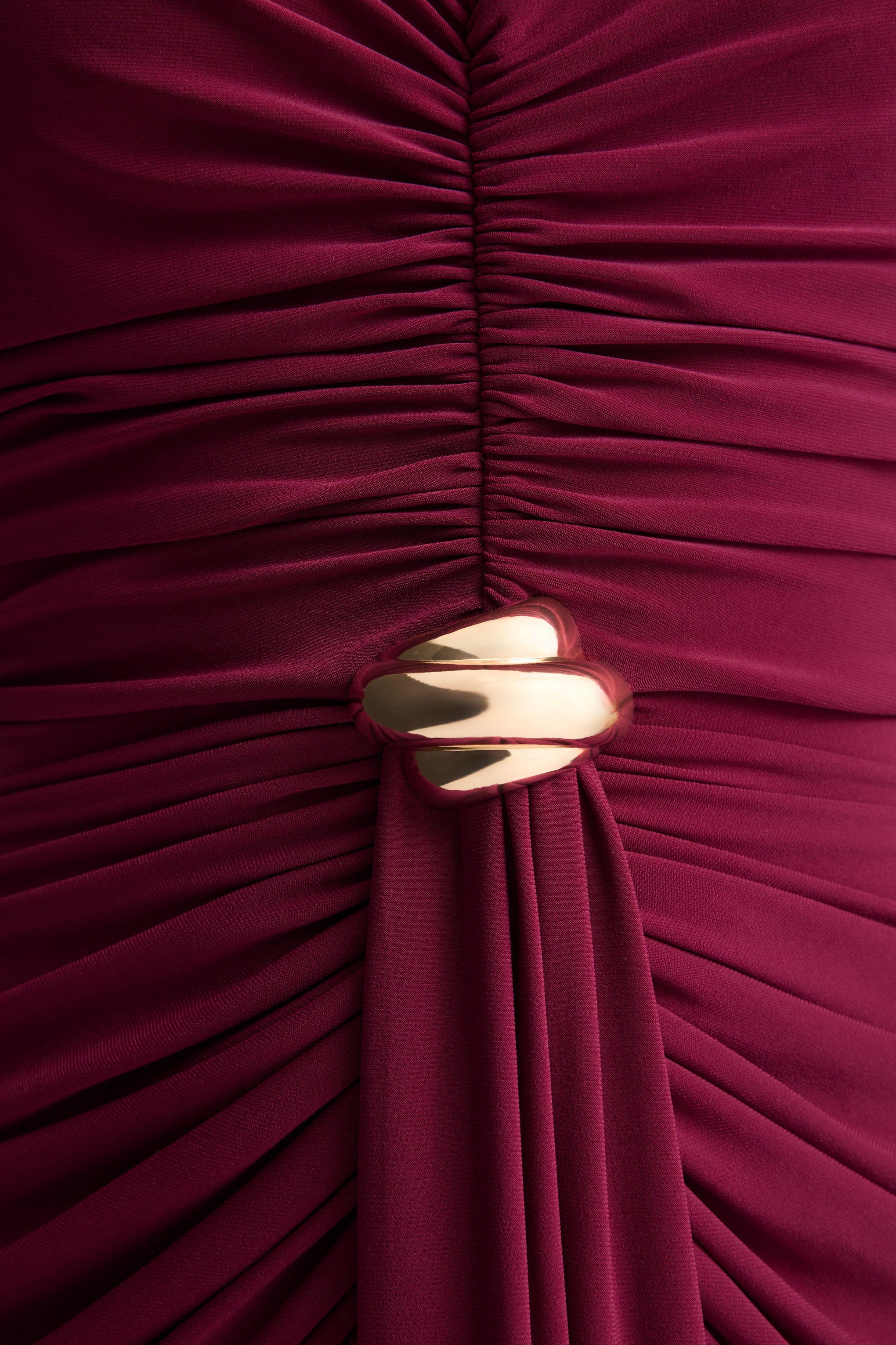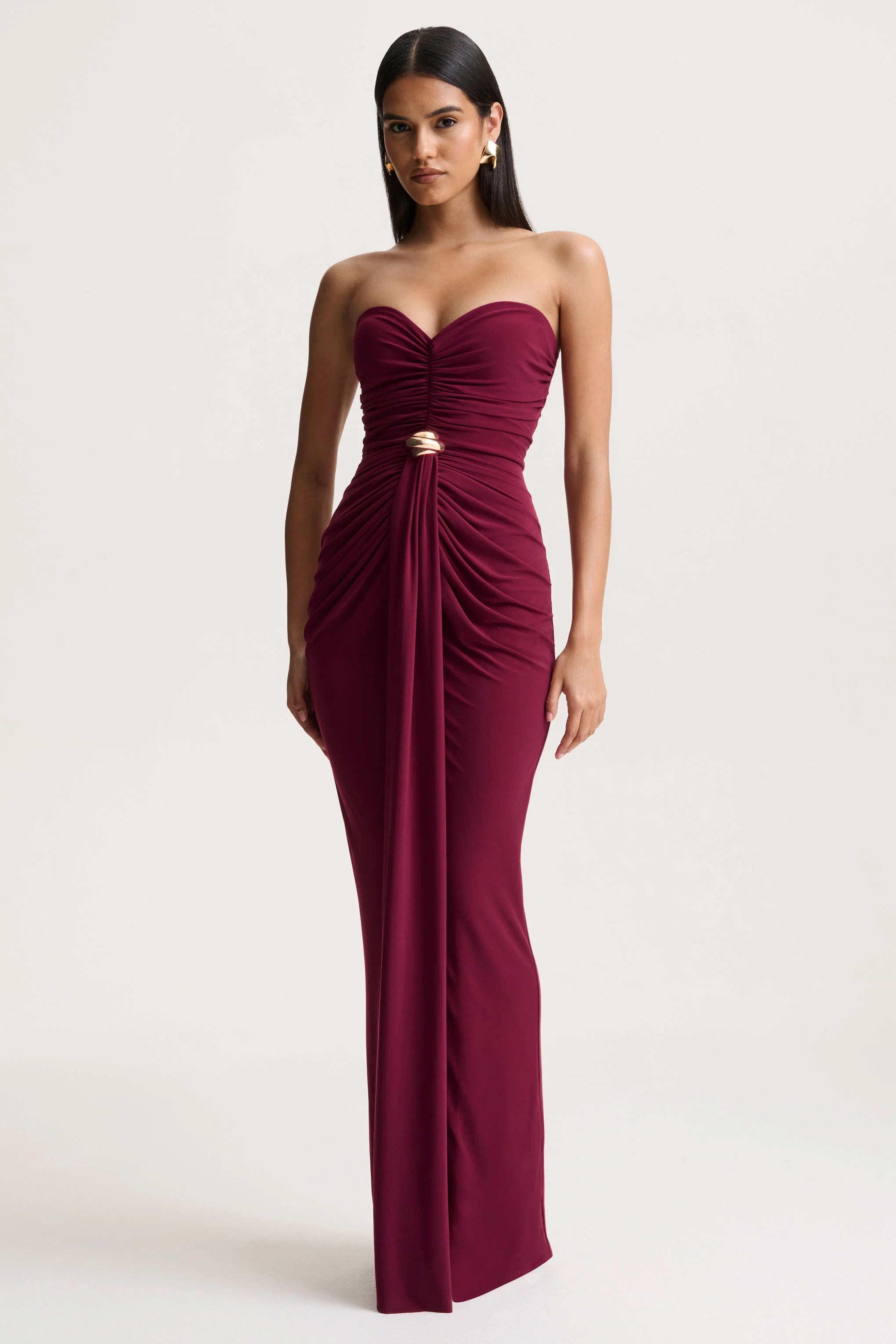 Sculpted and sleek, Beverly is the occasion-wear piece of the season. Designed in a rich burgundy hue of our premium stretch jersey, this maxi provides a gorgeous feminine silhouette. The sweetheart neckline elegantly frames the decolletage whilst the gold-knot detail creates an hourglass silhouette, with a touch of glamour. From wedding guest to elegant date nights, in Beverly you won't be forgotten.