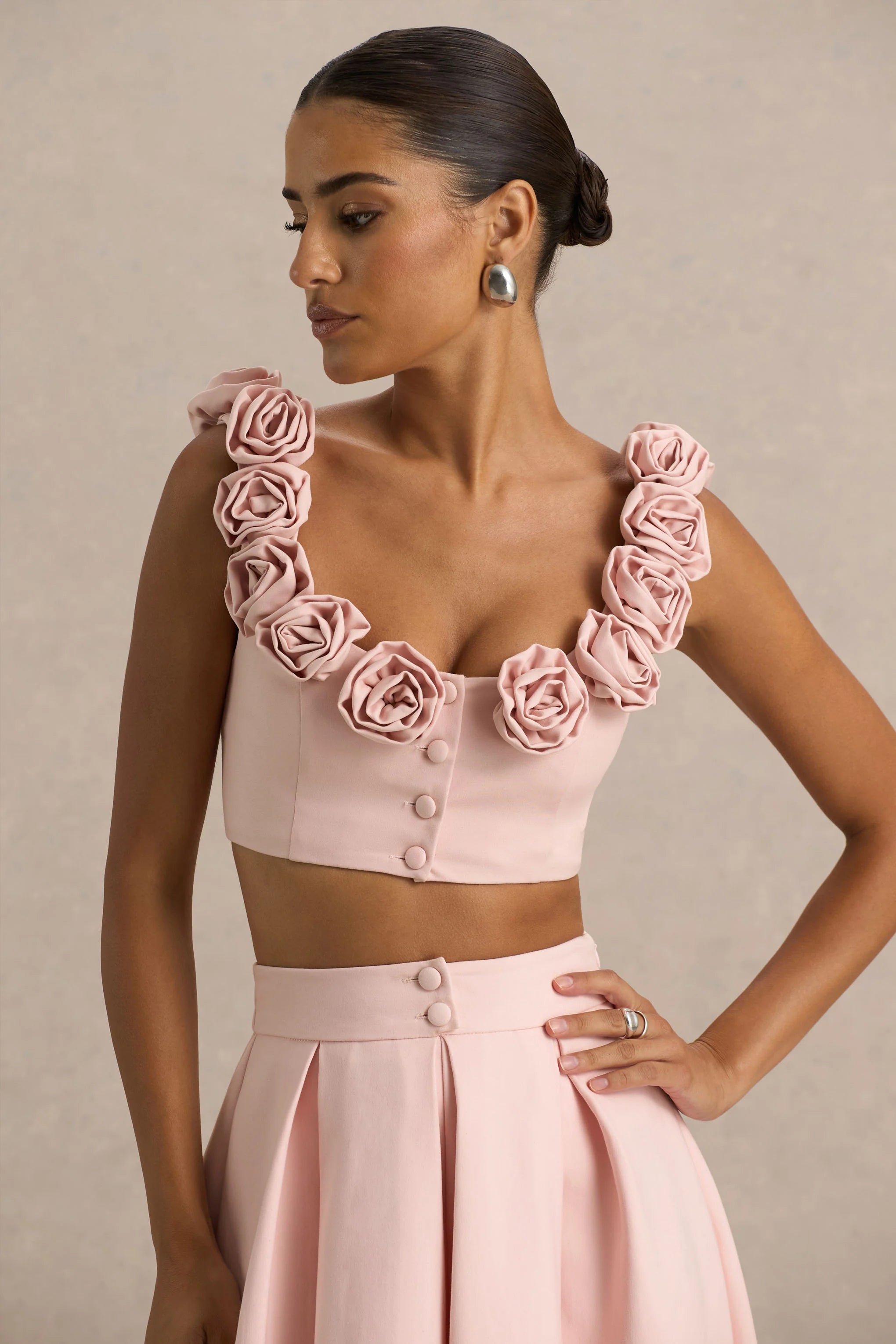 Designed to make a romantic statement, Blade has arrived. Crafted from our premium cotton modal in a dreamy baby pink hue, in this crop top you will be exude elegance into any room. The scoop neckline is complimented by delicate corsage detailing, that also covers through the straps, giving this piece a chic and feminine edge. The self-covered buttons add a tailored finish to Blade, ensuring you're flattered from all angles. From ladies brunches to evening cocktails, Blade will be your go-to all season long.