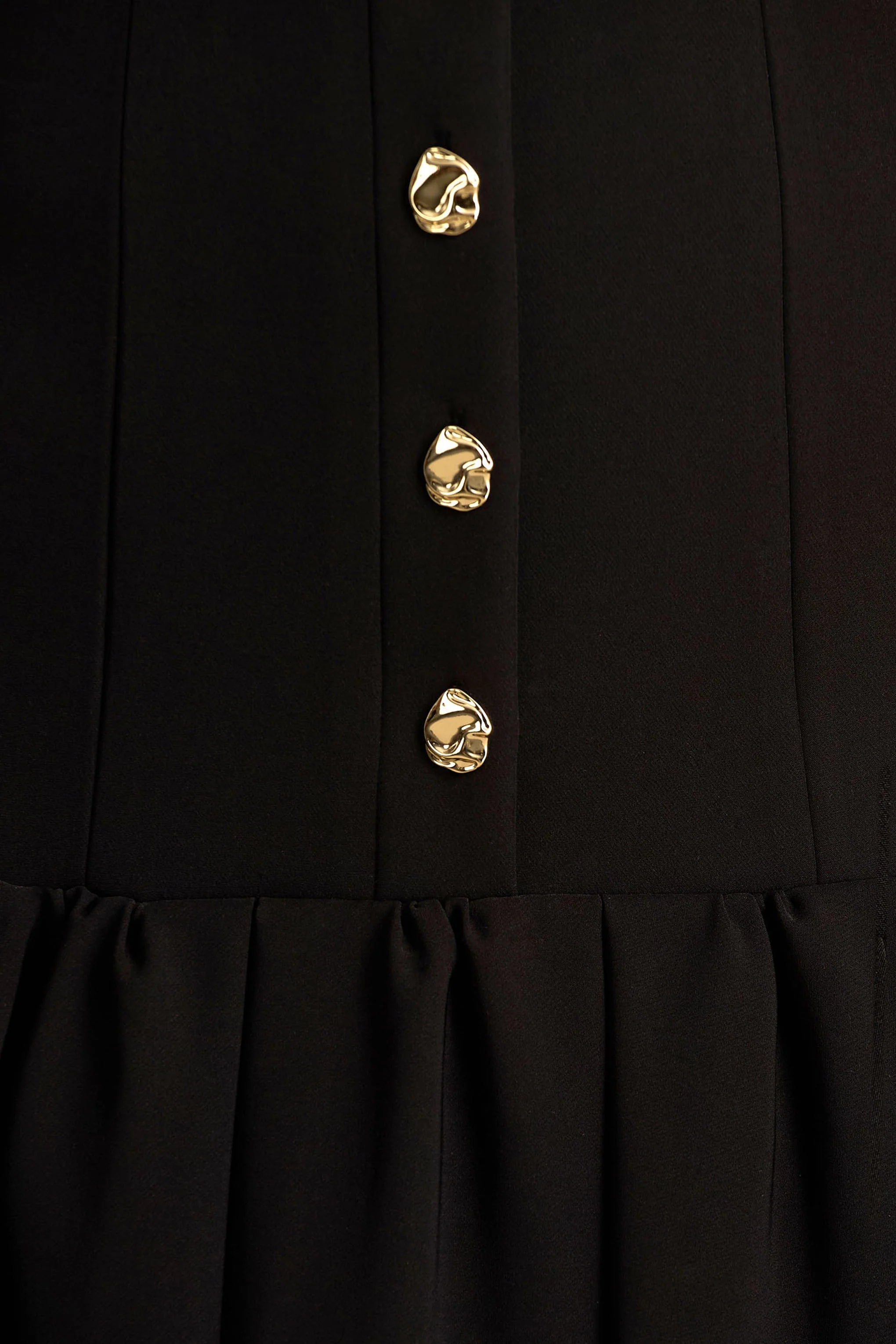 Command attention in our latest must have, Briella. Cut from our premium black crepe, this maxi-length silhouette is sleek and endlessly flattering. The bandeau neckline offers a clean, modern edge, while gold-button detailing adds a touch of timeless refinement. Finished with a chic drop waist that enhances the figure, this statement piece is designed for unforgettable evenings.