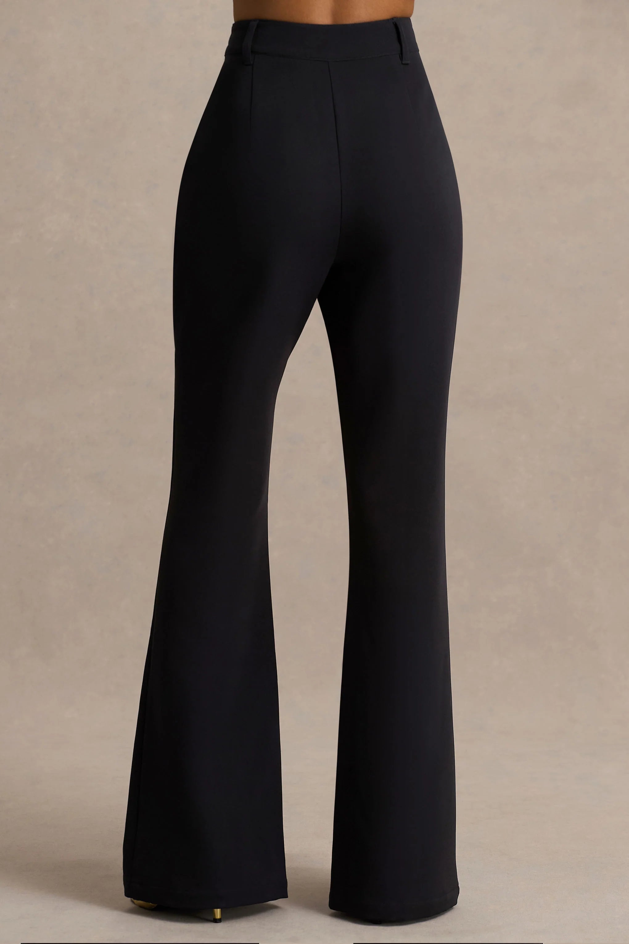From morning brunches to elegant dinners, the Carina trousers will see you through all occasions. Cut in a rich black shade of our premium stretch crepe, this elevated wadrobe staple will flatter you from every angle. Featuring a high waist to elongate your legs and a flared hem for a modern edge, in Carina you are guaranteed compliments. With endless styling options these are a must have in your trouser rotation.