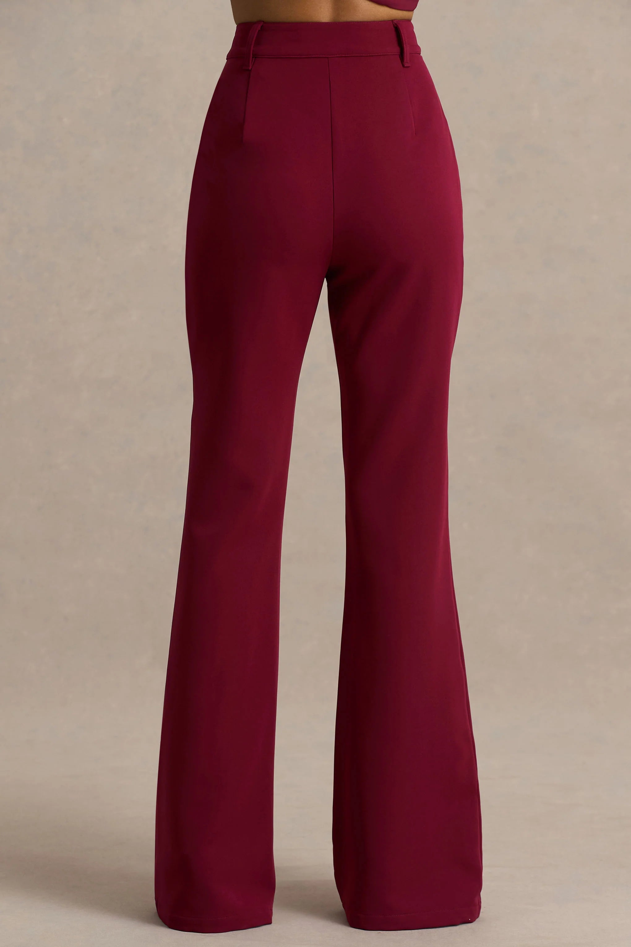 From morning brunches to elegant dinners, the Carina trousers will see you through all occasions. Cut in a rich burgundy shade of our premium stretch crepe, this elevated wadrobe staple will flatter you from every angle. Featuring a high waist to elongate your legs and a flared hem for a modern edge, in Carina you are guaranteed compliments. With endless styling options these are a must have in your trouser rotation.