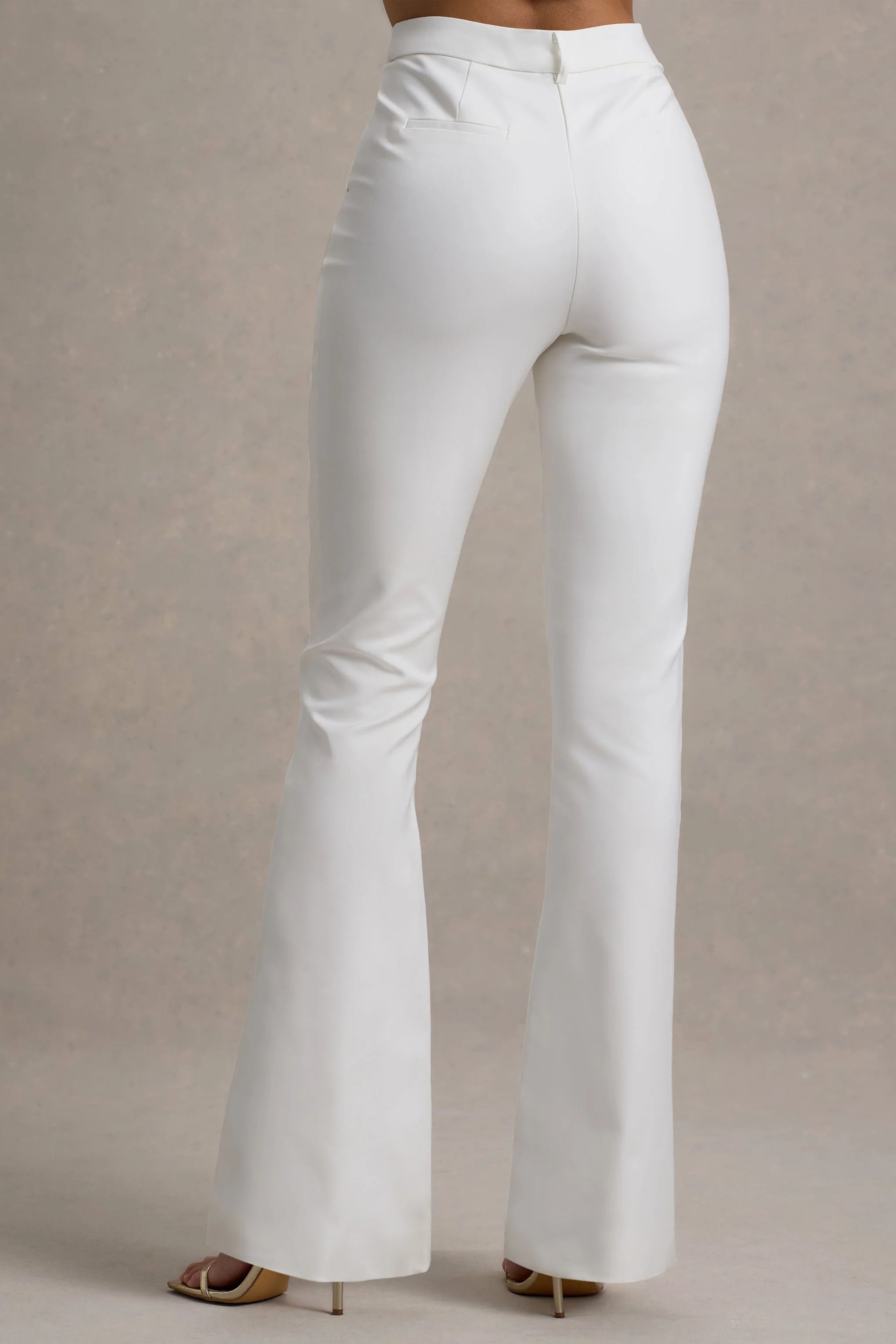 From morning brunches to elegant dinners, the Carina trousers will see you through all occasions. Cut in a rich white shade of our premium stretch crepe, this elevated wadrobe staple will flatter you from every angle. Featuring a high waist to elongate your legs and a flared hem for a modern edge, in Carina you are guaranteed compliments. With endless styling options these are a must have in your trouser rotation.