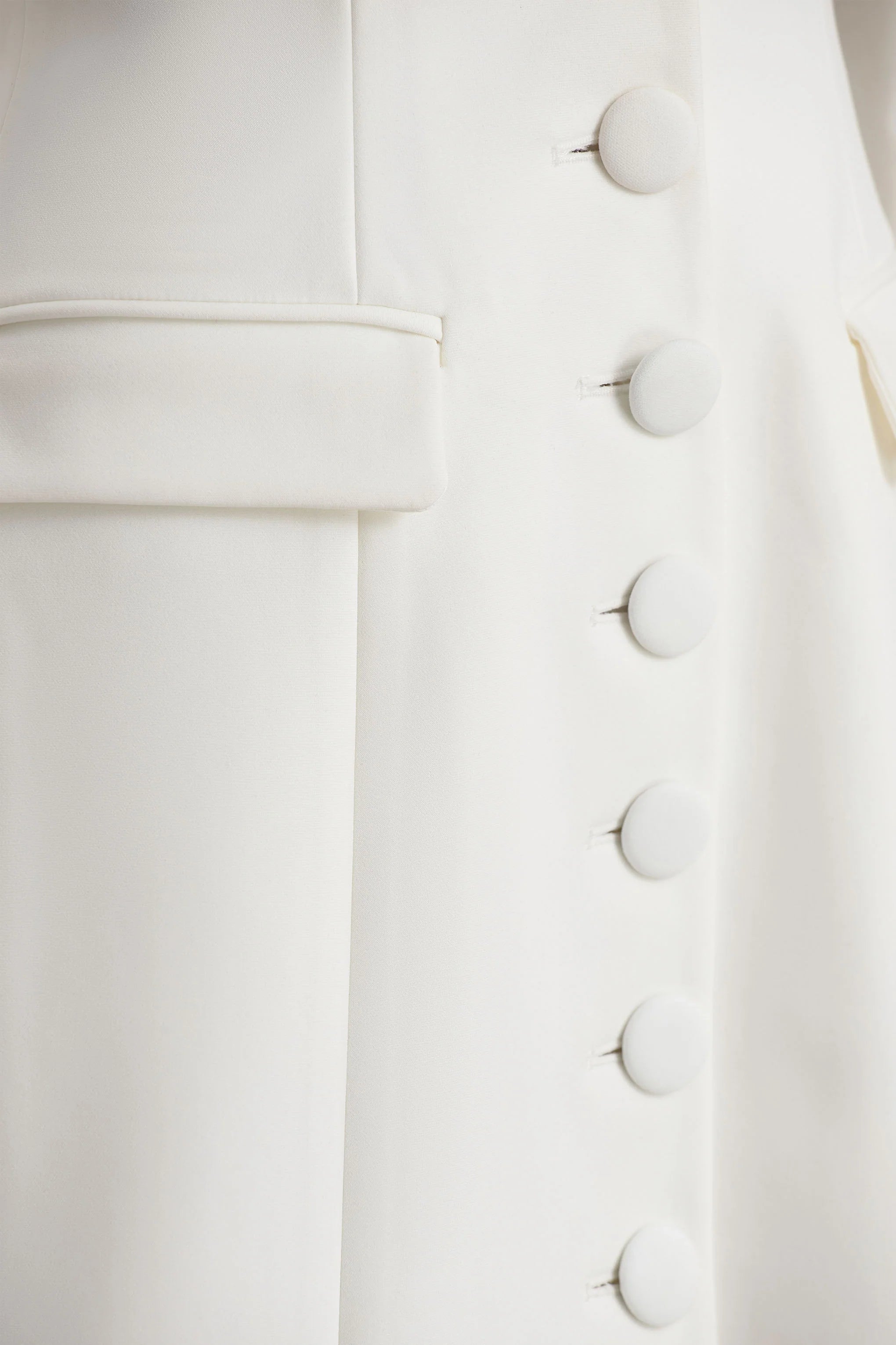 Showcase true elegance in Carmen, a tailored staple that flatters from every angle. Crafted in a classic white hue of our premium crepe, this mini dress is made for moments that call for a head-turning look. The Sweetheart neckline and statement shoulders frame the decolletage beautifully, while the button down finish adds a polished touch. Style with sleek court heels and a glamorous up-do for a look that can take you from day-to-night.