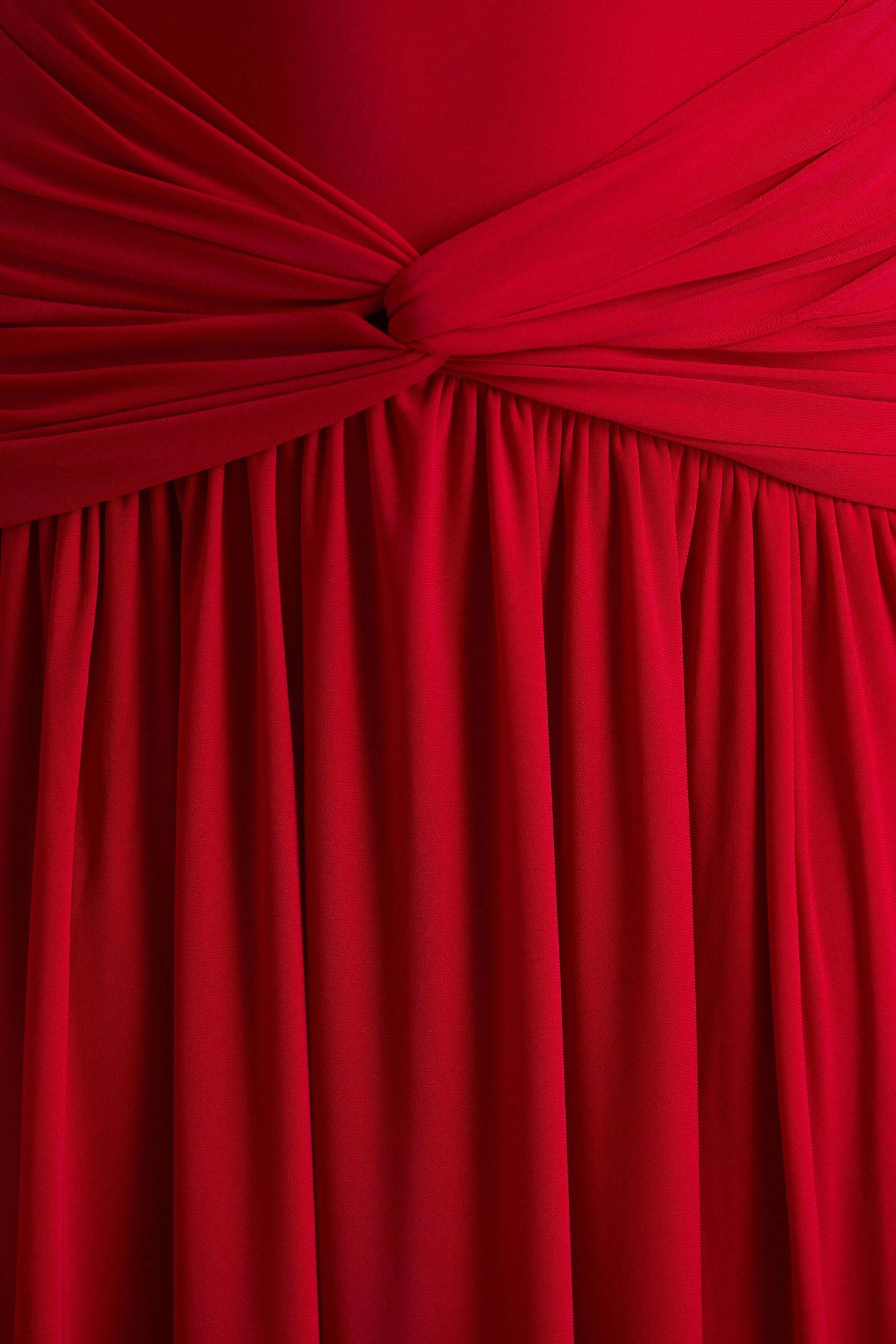Command attention in Cascade, a head-turner that makes a statement without saying a word. Crafted from our premium red stretch jersey in a floor-skimming maxi length, it contours the body seamlessly before flowing into a full skirt. The high neckline and sleeveless cut create a clean, sophisticated silhouette, while the twist detail at the waist draws the eye and enhances your shape. Perfect for black-tie events, glamorous dinners, or nights where elegance is non-negotiable.