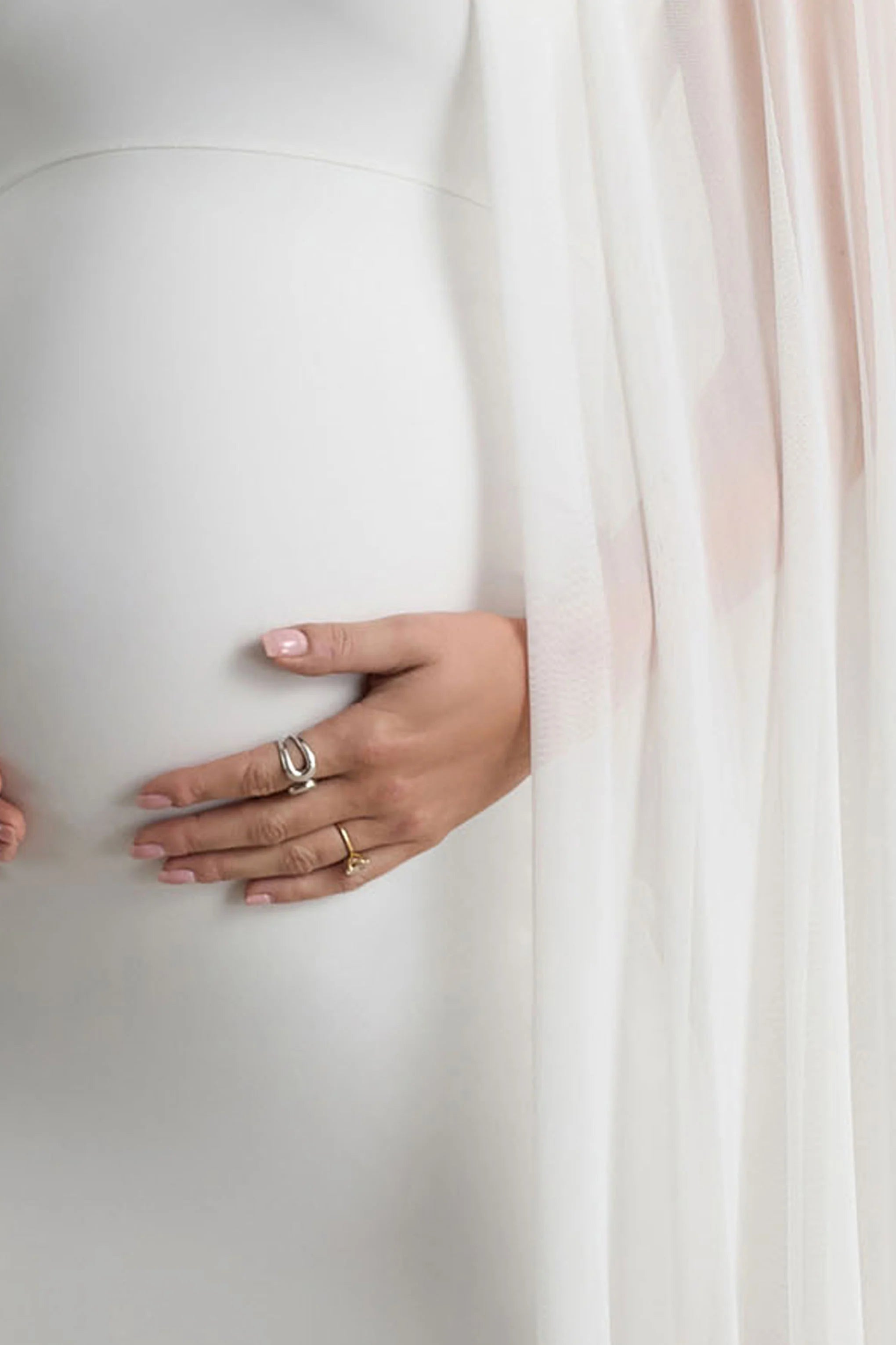 Make an ethereal and enchanting statement in Charlene, a delicate yet striking piece for your occasion wear wardrobe. This white mini dress is crafted from our premium stretch jersey, for a figure hugging finish, and elevated with a striking mesh cape. Featuring a crew neckline and shoulder pads that provide gorgeous feminine structure, as well as expertly placed ruched detailing for a flattering finish. From baby showers to elegant dinners, Charlene is the ultimate show stopper.