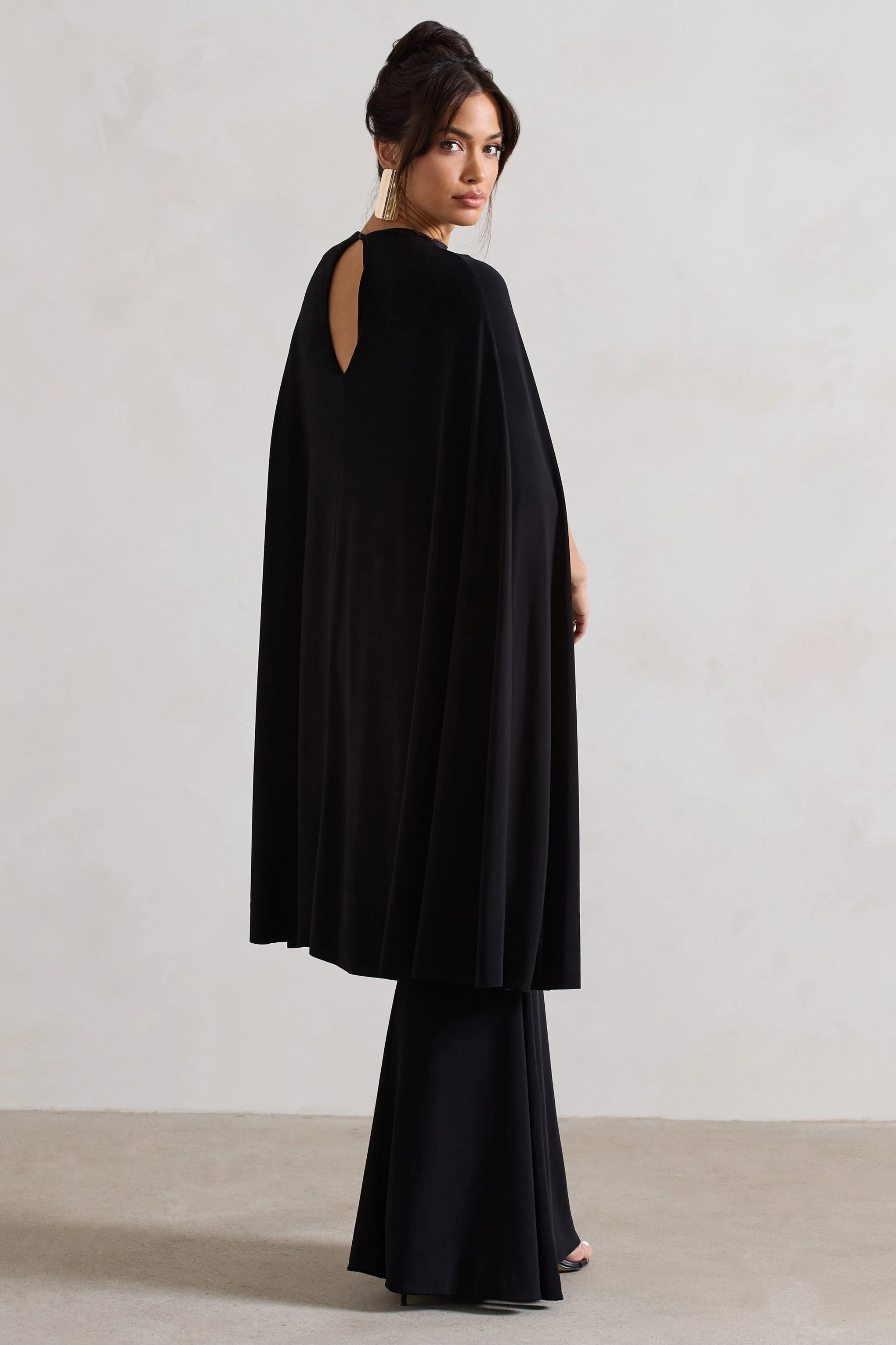 Wedding season calls for an elegant addition like Charmaine. Crafted in a classic black shade of our signature stretch jersey, this maxi is defined by an extravagant cape detail and demure high neckline. Flourished with some sparkling stilettos like Oh Please, this black maxi dress is perfect for any black tie event.