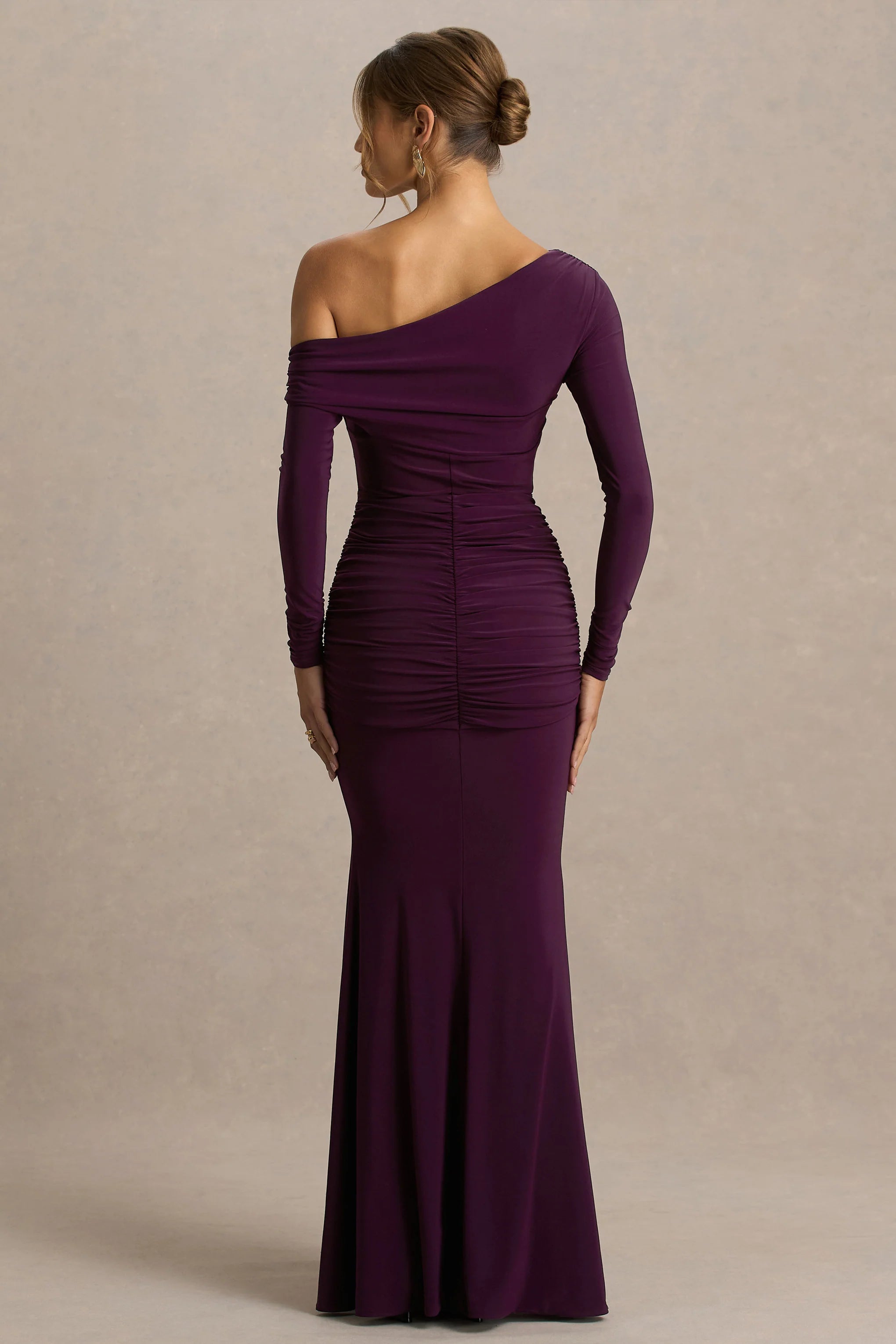 Meet Clover , a dress designed to sculpt, flatter, and make an entrance. Cut from our premium stretch jersey in a deep burgundy, it hugs the body while allowing effortless movement. The asymmetric neckline creates a striking silhouette, balanced by gathered detailing that contours the figure beautifully. At the waist, a flowing sash draws the eye to create an hourglass silhouette, Elegant yet impactful, Clover is the perfect balance of timeless style and modern allure.