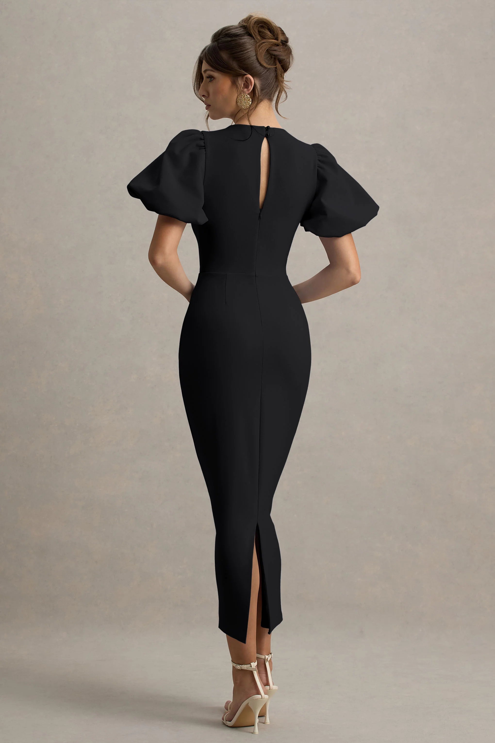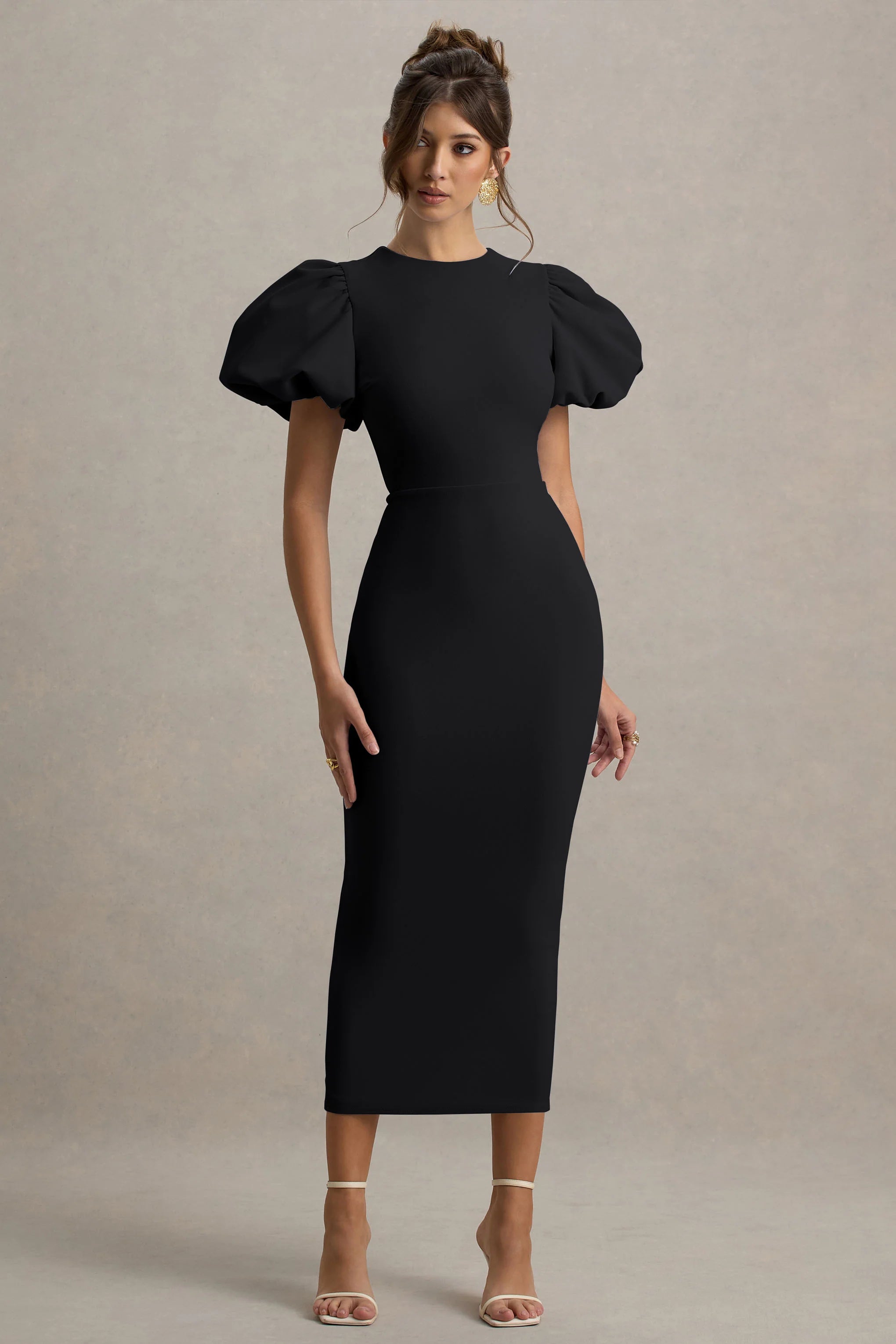Whether you're on your best guesting behaviour for your girl's wedding or dressing up for date night, Dakota is the perfect midi dress for sweetening the season in style. Crafted from our black premium scuba crepe fabric, your silhouette is defined by a sculpting fitted bodice and skirt to accentuate your curves seamlessly.