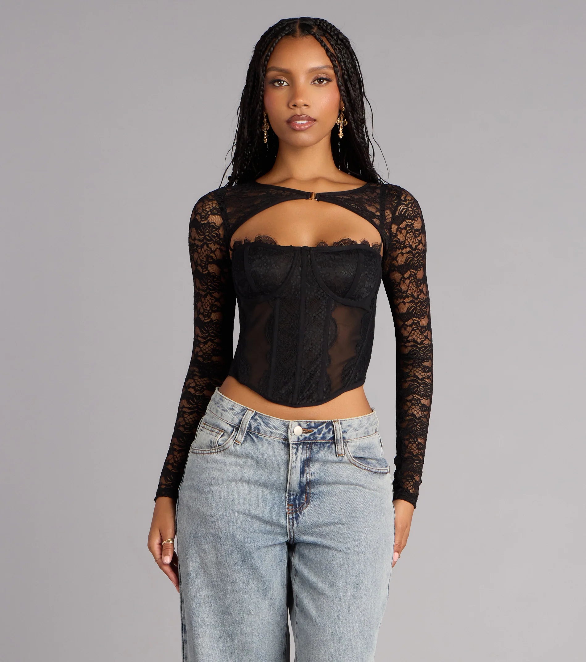 The easiest way to add instant drama. This long sleeve lace bolero layers effortlessly over corsets, crop tops, or dresses, giving you that flirty sheer coverage with a sultry twist.