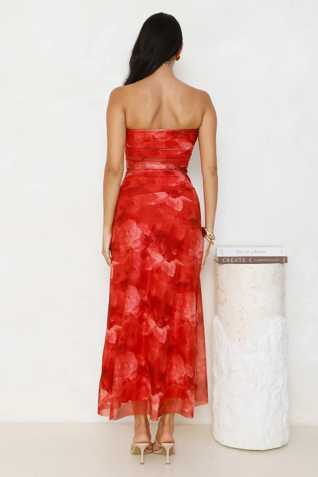 You're going to want to wear this dress to every event. The Dollhouse Daze Strapless Mesh Maxi Dress features a fitted bodice, a straight flowy skirt with a split, and an inner grip. Style with heels and curls!