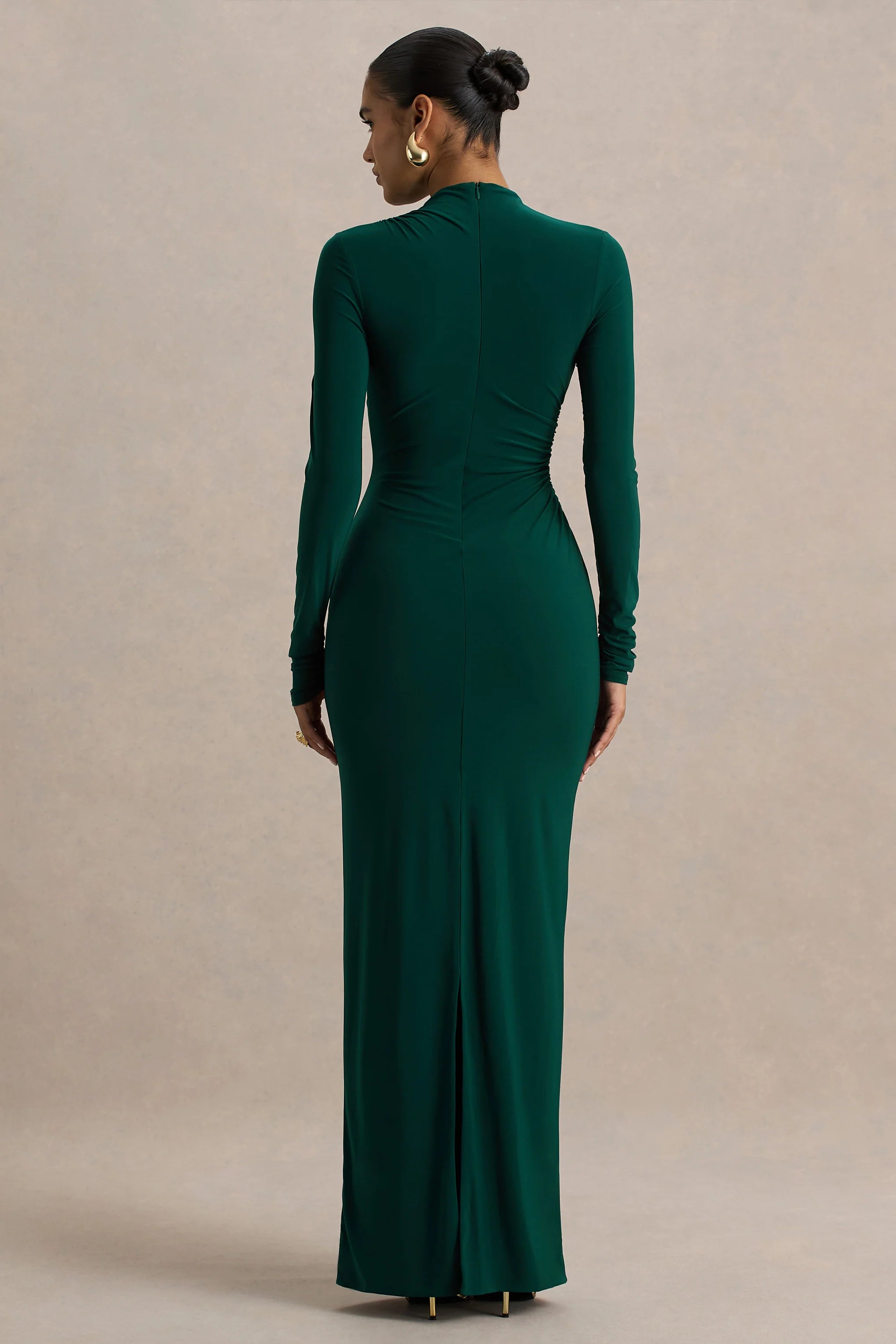 Elegant, refined, and endlessly flattering, Eden is the epitome of understated glamour. Crafted from our premium stretch jersey in a rich bottle green, this maxi dress is designed to sculpt and smooth, offering a flawless fit that enhances every curve. The high neckline adds a polished edge, while ruched and gathered detailing at the waist draws the silhouette inward for a beautifully cinched shape. A subtle centre-back split adds just the right amount of movement, making Eden a timeless choice for formal moments and elegant evenings.