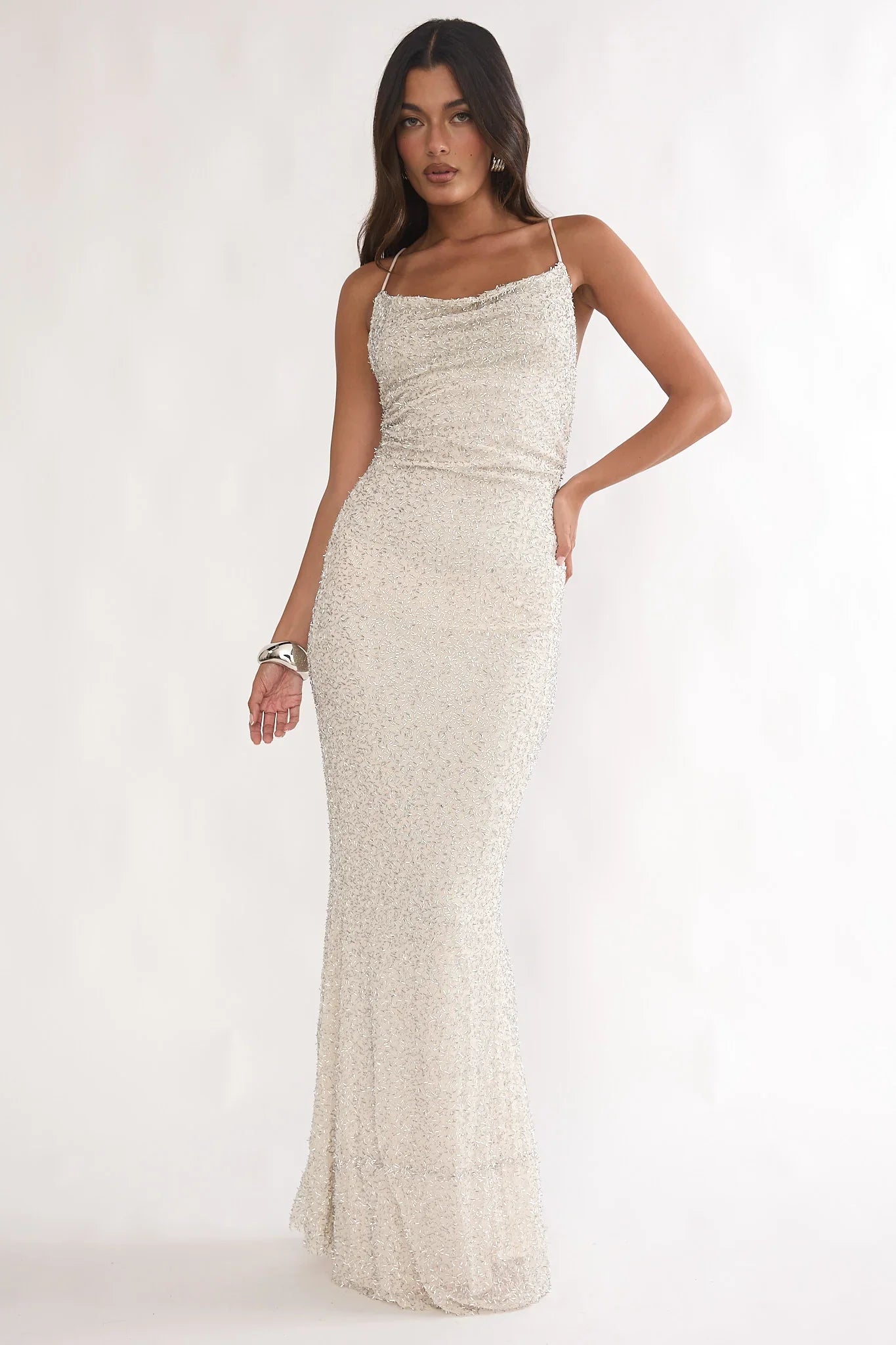 Channel your inner goddess in our dreamy Emillia maxi dress! It features an open, strappy back and gorgeous sequin detail throughout. Perfect for a formal cocktail party, or any event where you want a sophisticated yet sexy look. Team it with silver heels and a clutch for an unforgettable look.