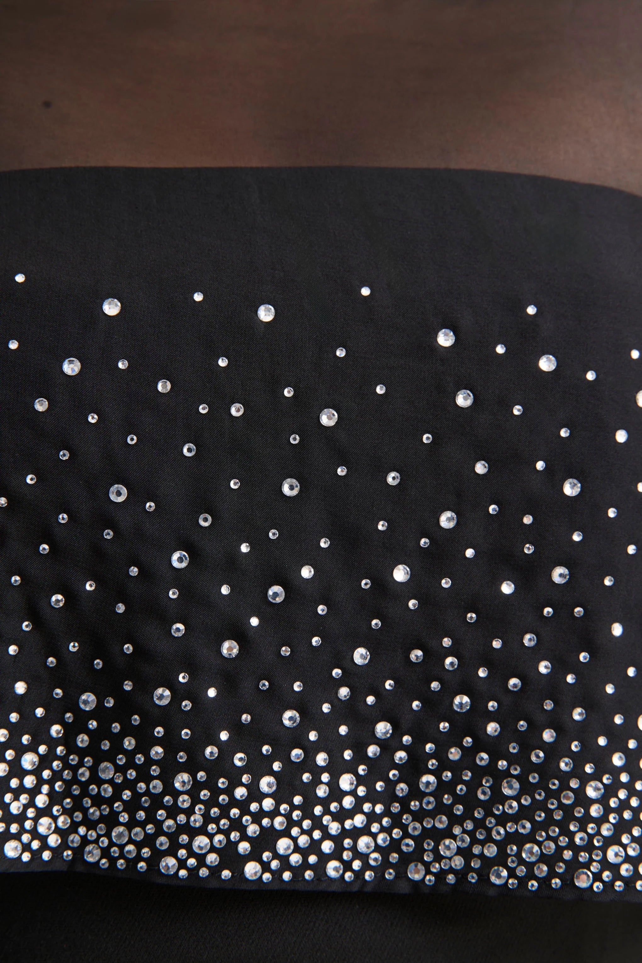 Step into effortless sophistication with Everly. Crafted from our premium crepe, this statement piece features a dramatic hand-embellished cape that drapes elegantly over the shoulders. The V-shape back detail adds a touch of daring allure, while the maxi length creates a fluid, graceful silhouette. Perfect for evenings where you want to be unforgettable, Everly is a show-stopping choice for modern glamour.
