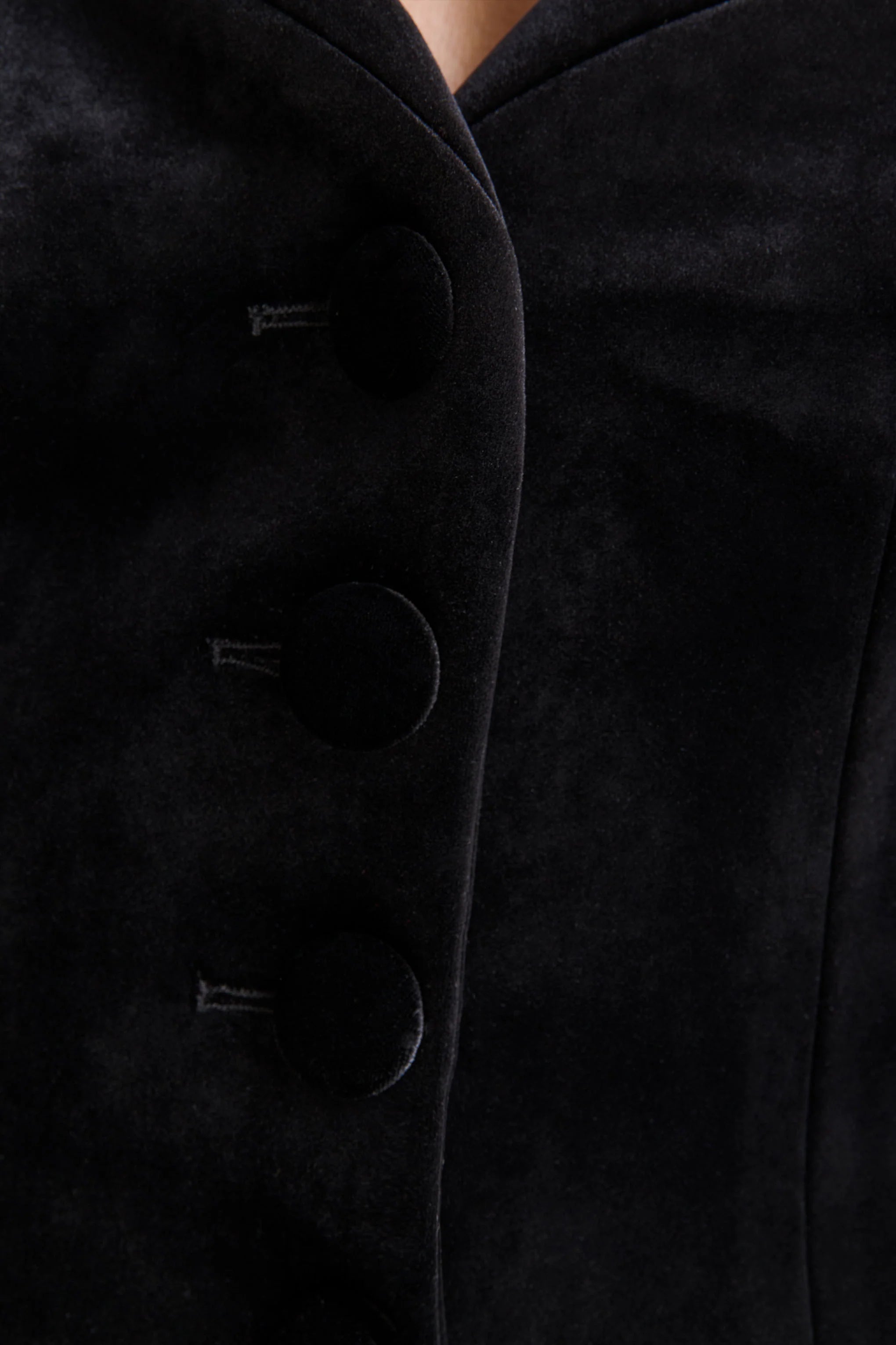 Step out in style with Friya, a chic design made to turn heads. Crafted from our premium black velvet, this mini is as playful as it is elegant. Featuring a sweetheart neckline that frames the shoulders beautifully, a button-up front, and front pockets for polished finish. The mini length keeps it fun and flirty, perfect for evenings out or weekend vibes.