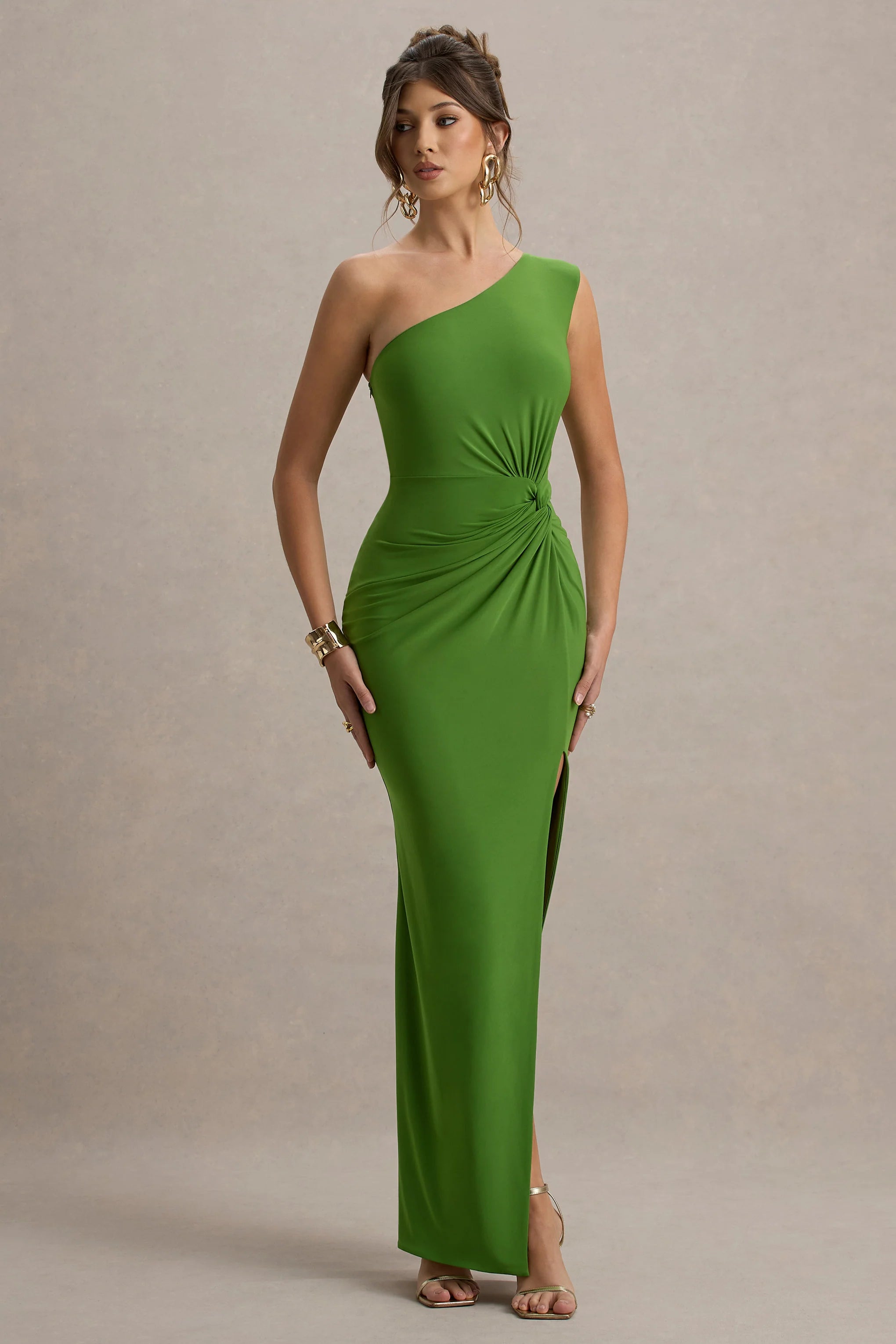 For a look that screams style, envelope yourself in the trending wrap details of our new favourite asymmetric maxi, Galene. Crafted from premium stretch jersey in a seasonal shade of green, this one shoulder look is perfect for every event on your calendar as it's moveable front leg slit will keep you dancing all night long.