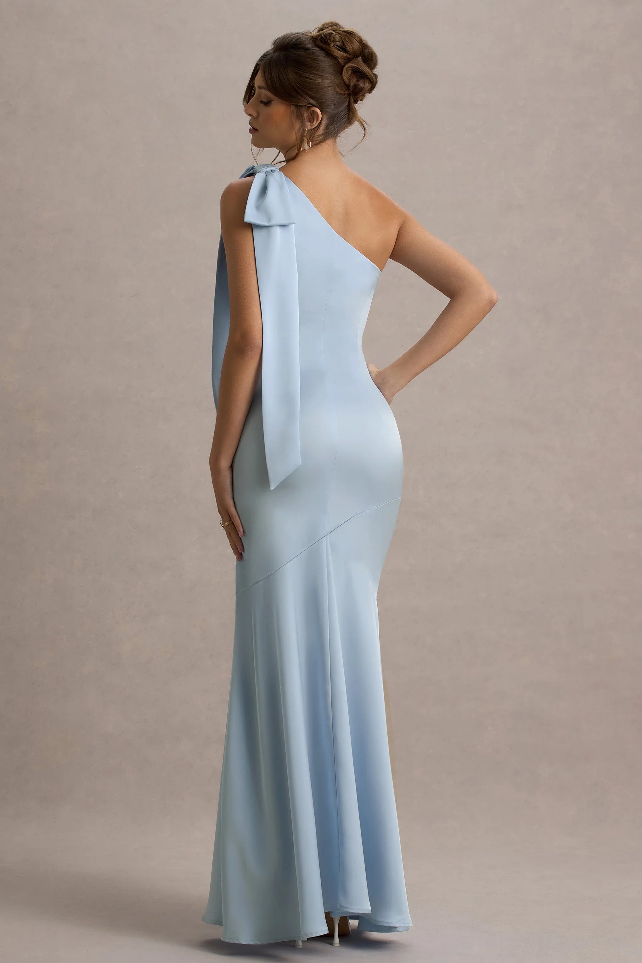 Exude a romantic state of mind in our aptly-named maxi dress, Here For Love. The ultimate bridesmaids piece, this maxi arrives in a pastel powder blue shade of our signature silky satin. Keep Here For Love at the forefront of your next event by teaming yours with a tousled bun and some strappy stilettos.