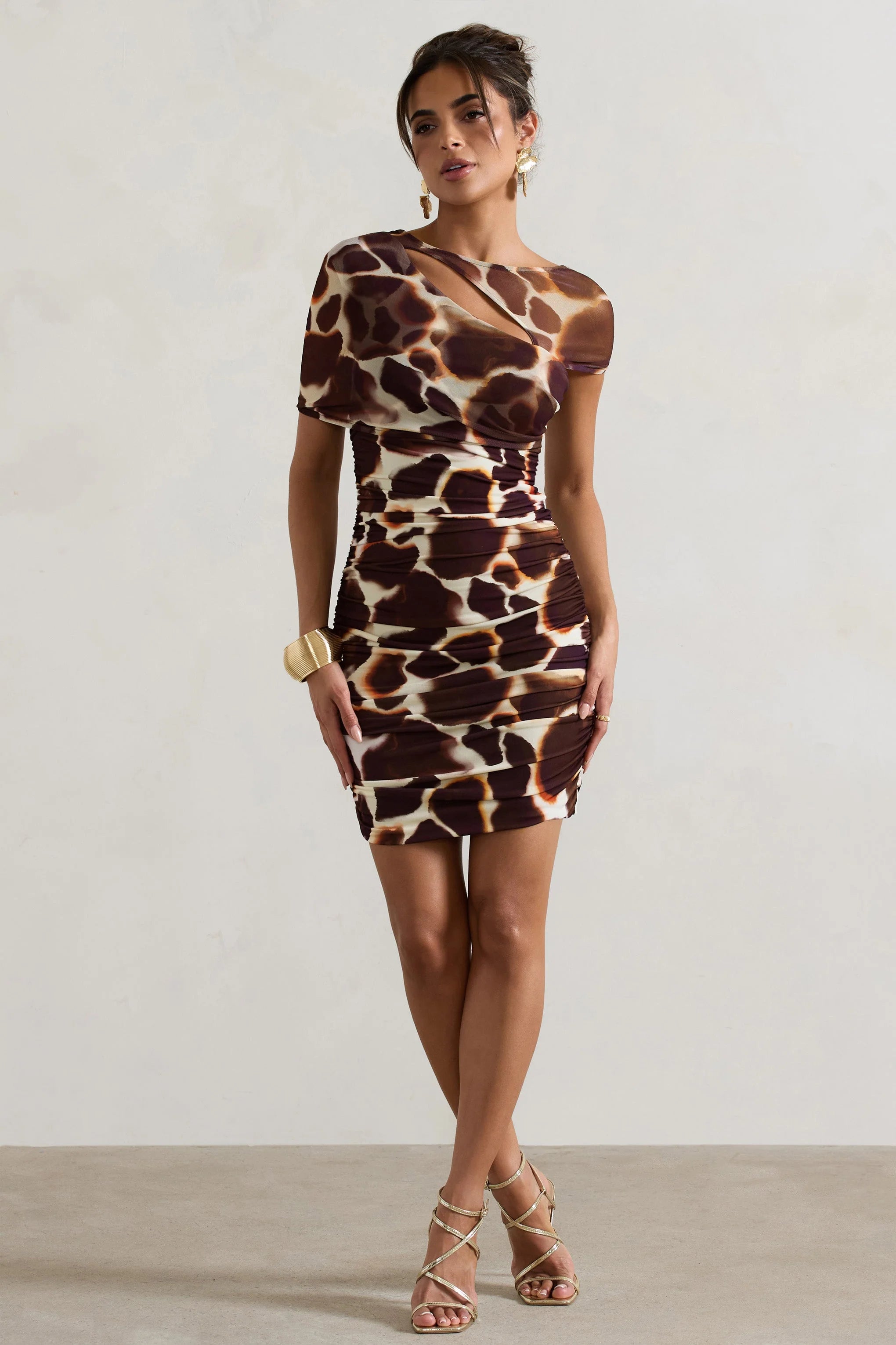 Sculpt your silhouette in our fully ruched mini dress, Himalaya. Designed in our dual-layered jersey, this playful piece boasts strategically placed mesh wraps that cinch your natural curves. Compliment its tropical animal print with some glistening gold accents this season.