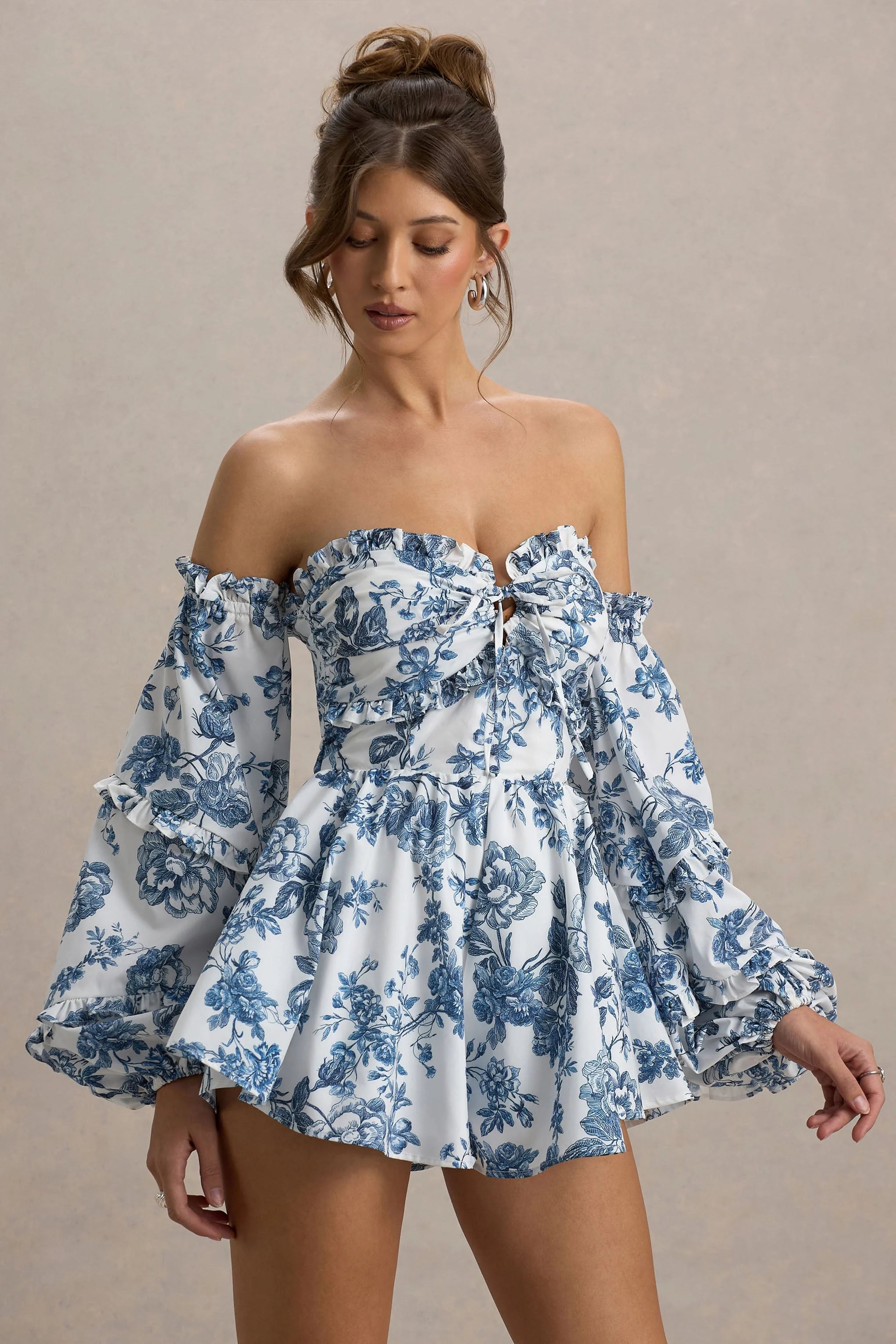 The must-have playsuit of the season has just landed, say hello to Ithaca. Crafted from our premium blue porcelain print poly cotton poplin, this piece features a gorgeous bardot neckline and volume sleeves for a breezy summer silhouette. Style yours with heeled sandals for the perfect holiday look.