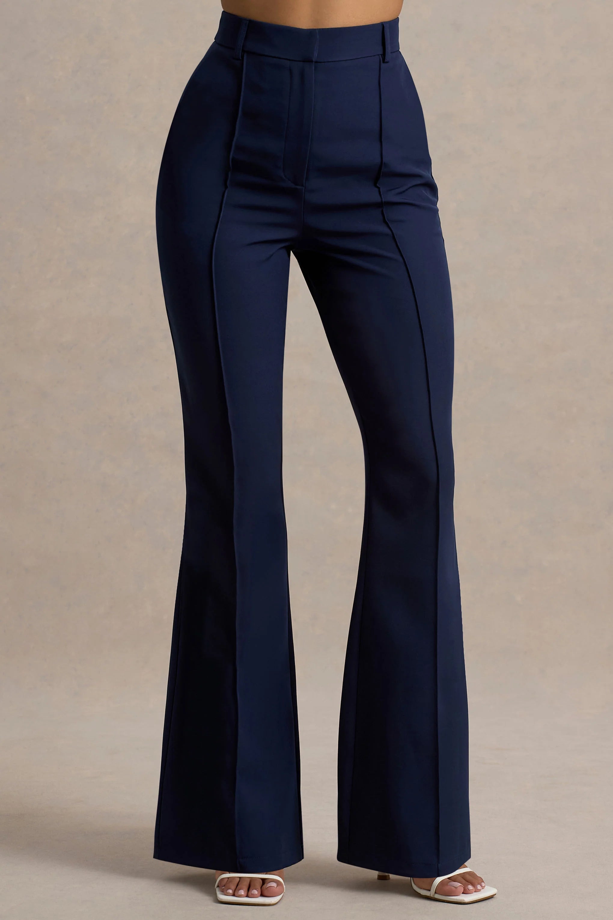 Elevate your wadrobe with our Jada trousers, a sleek and sophisticated staple. Curated from our premium stretch crepe in a soft shade of Navy, these trousers are designed to sculpt you with every step. Finished with a high waist and flared leg, your legs will be elongated and flattered from all angles. Pair with our Nellie top for a refined and elegant look.