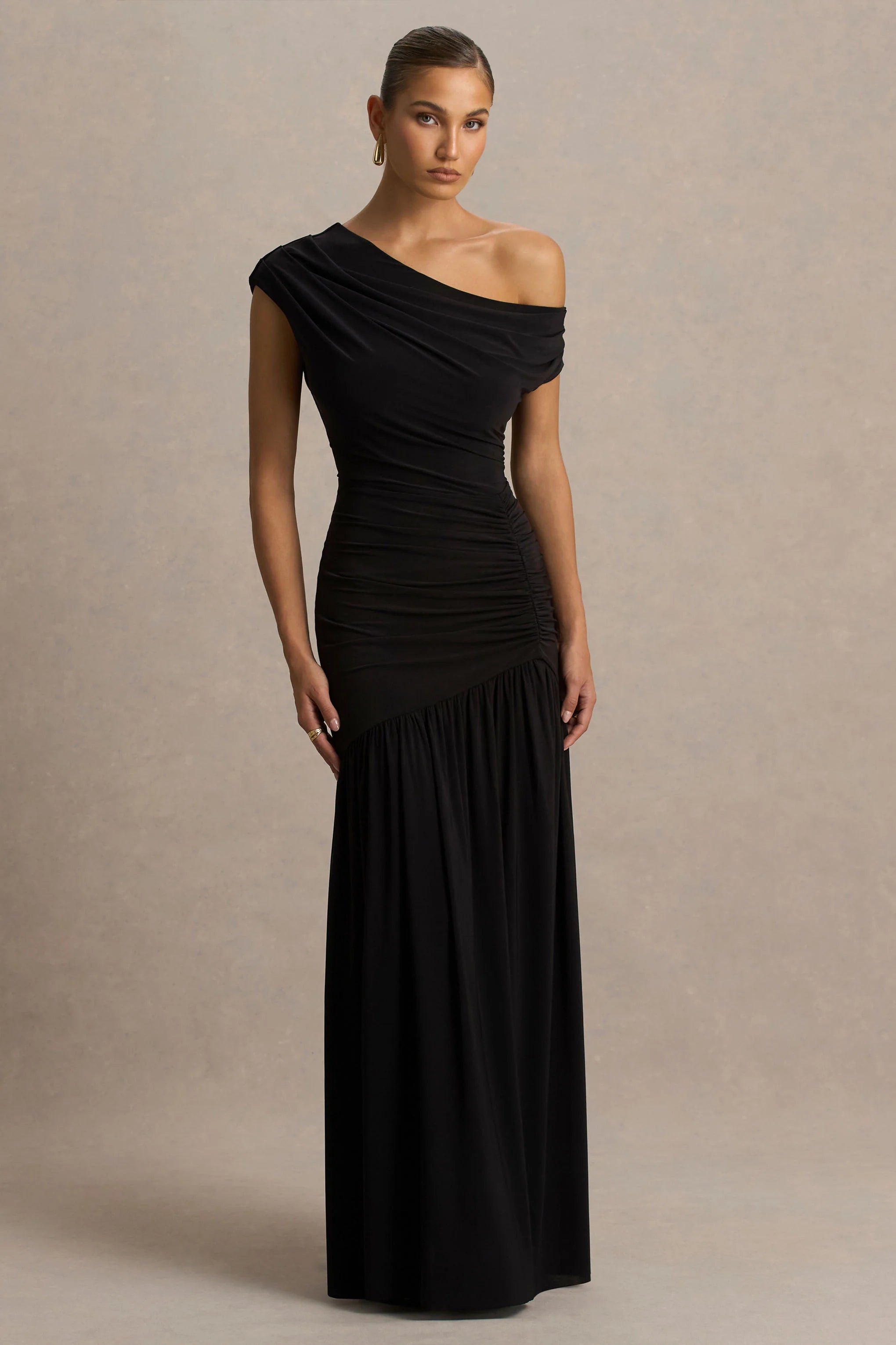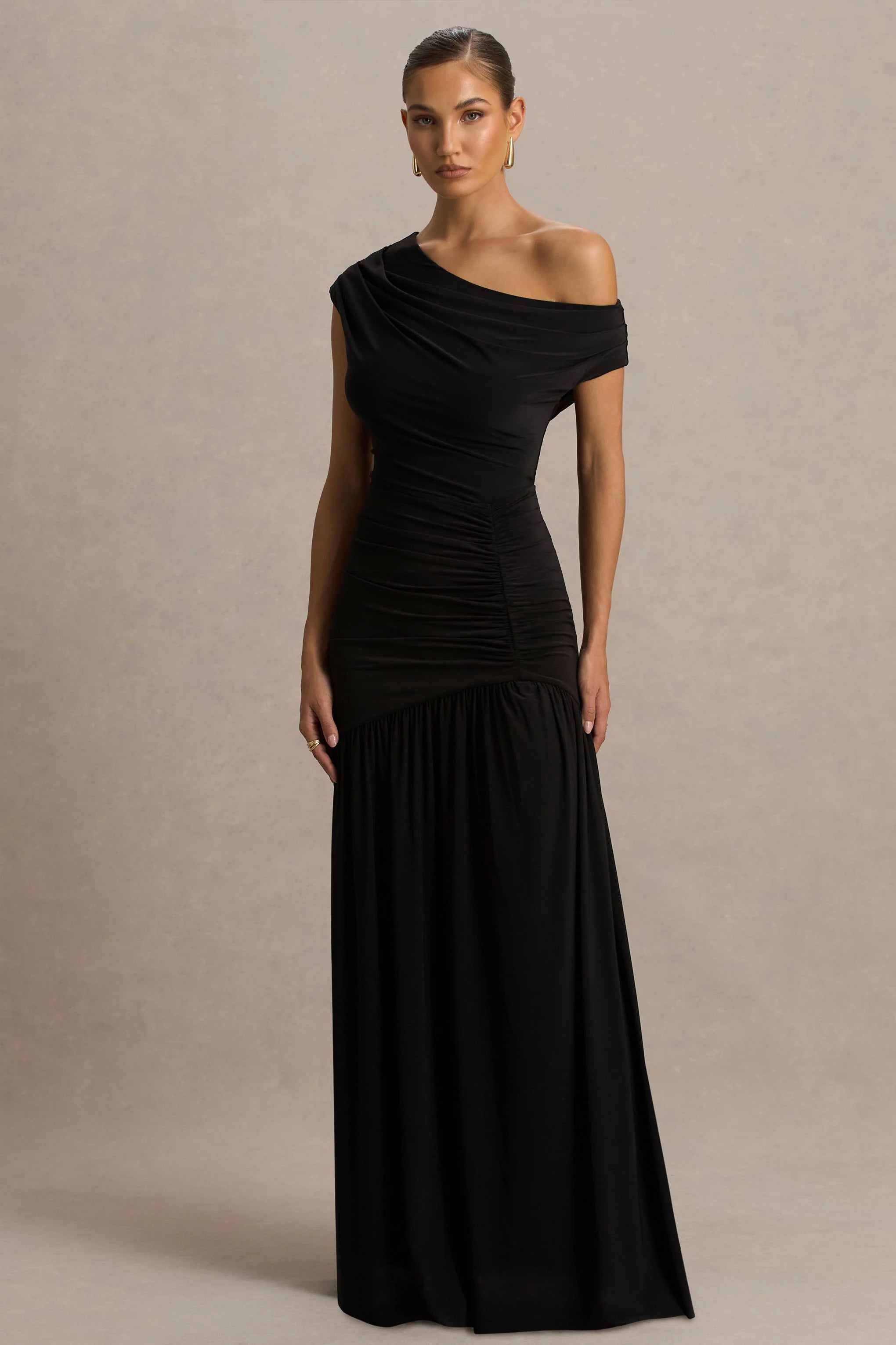 Chic, sculpted, and effortlessly striking, Kady is designed to make an entrance. Crafted from premium stretch jersey in timeless black, this maxi dress hugs and drapes in all the right places, ensuring high-impact style. The asymmetric neckline and blouson bodice create a soft, flattering shape, balanced by a ruched detailing that defines the silhouette. Finished with a daring front high split, Kady moves with confidence and allure, perfect for evening events that call for understated drama.
