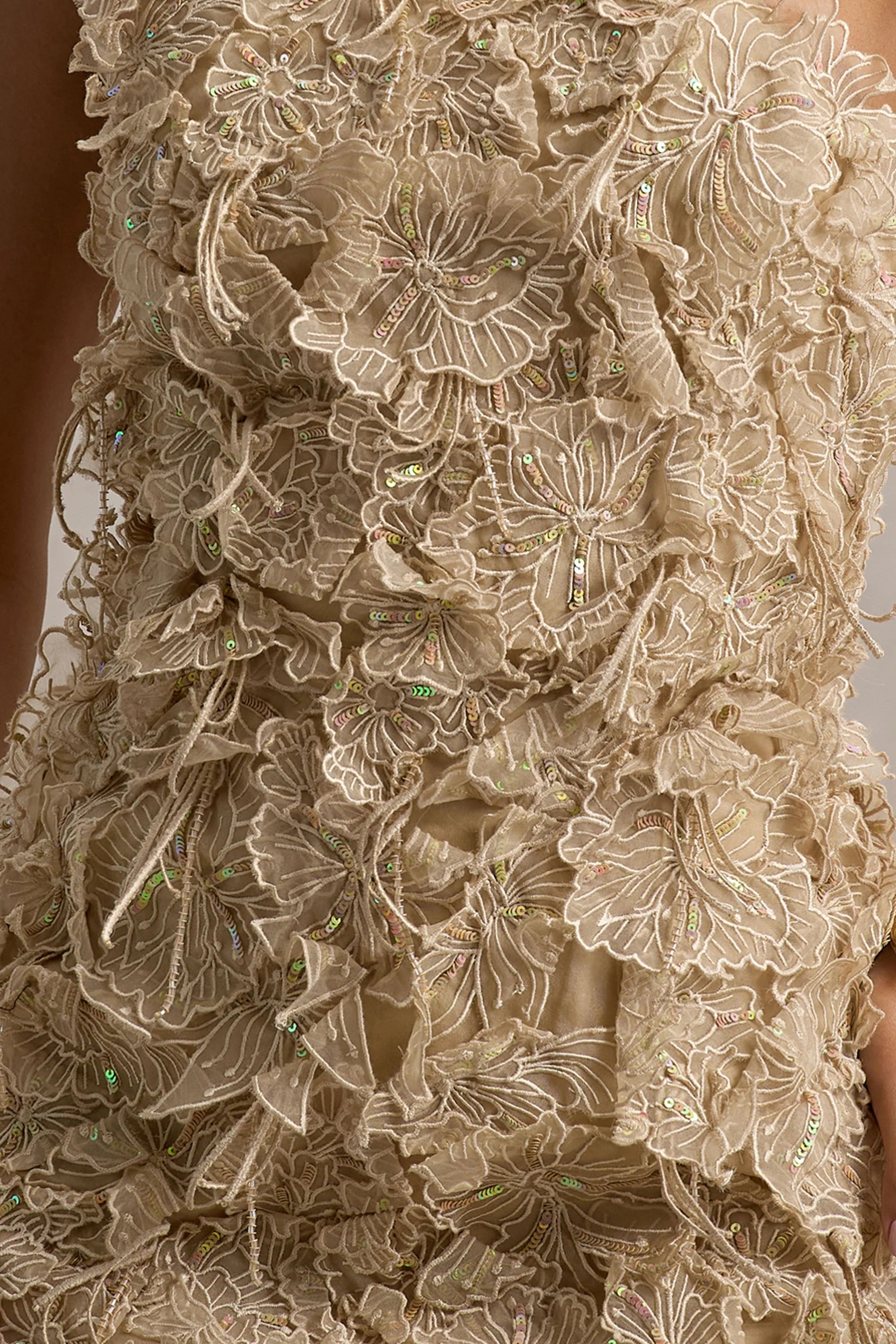 Stand out and captivate at your next special occasion in our striking Kamara mini. This head-turner is crafted from our premium 3D textured fabric and is adorned with delicate embellishment, in a soft shade of nude. Featuring a feminine halter neckline that elegantly frames your decolletage, and a statement tie up back detail that ensures a perfect fit. Designed for you to steal the spotlight, Kamara pairs perfectly with gold accessories for a look you won't be forgotten in.