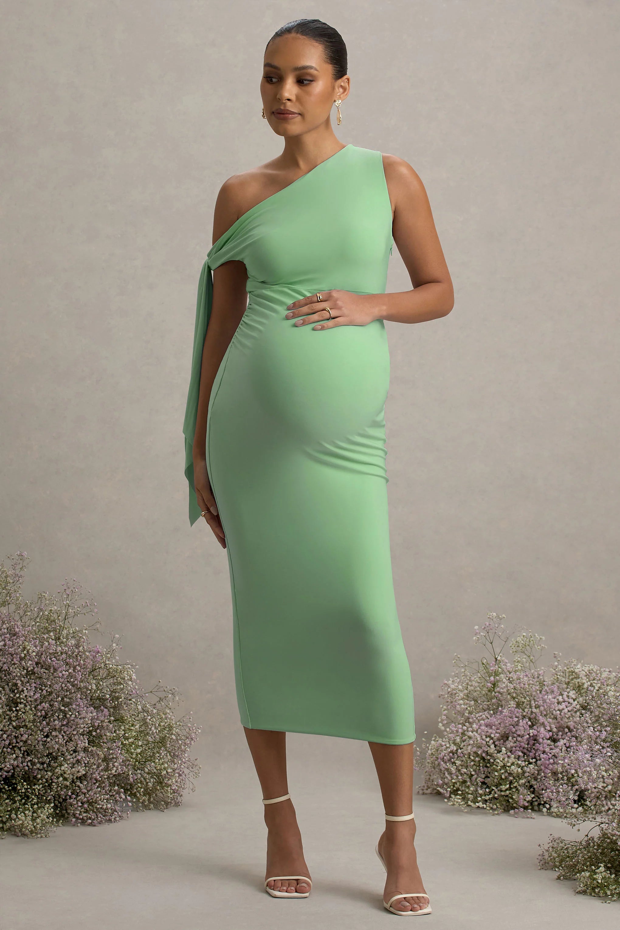 For a stunning maternity look that will turn heads, say hello to Katarine. This midi dress is cut in our premium stretch jersey that will flatter you from every angle, in a captivating shade of light green. Finished with ruched detailing and a striking knot sleeve to add a little drama. This piece is a go to for any dressed up moments this season.