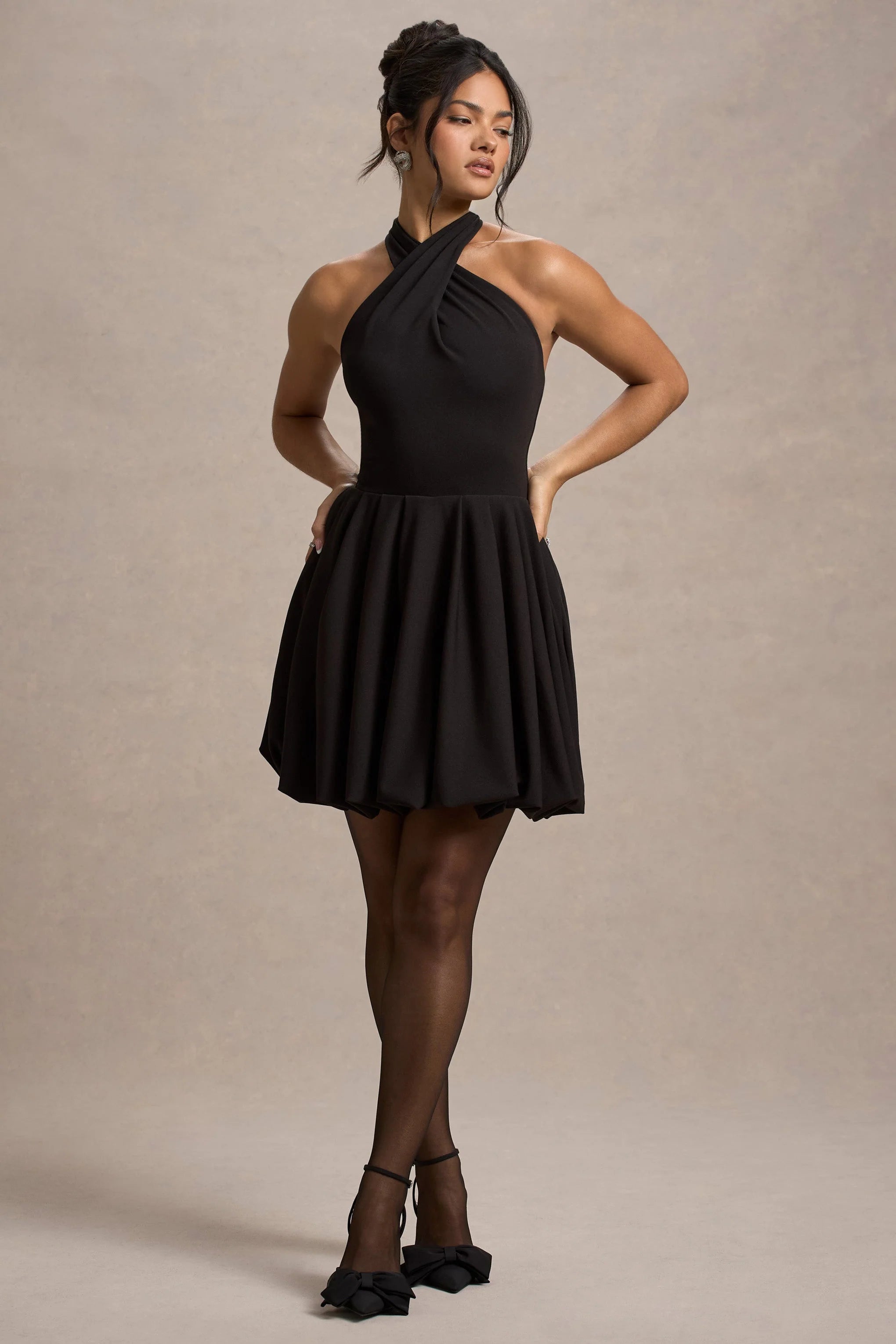 Defined by its playful silhouette and striking design, Klytie is a bold choice for your next special occasion. Crafted from our premium scuba crepe, this black halter-neck mini dress showcases a flattering neckline that adds a touch of sophistication. The standout feature is the puffball skirt, bringing a dramatic flair and lively movement to your look. Perfect for a night out or a cocktail party, keep Klytie in the spotlight with statement heels and sleek accessories for an unforgettable entrance.
