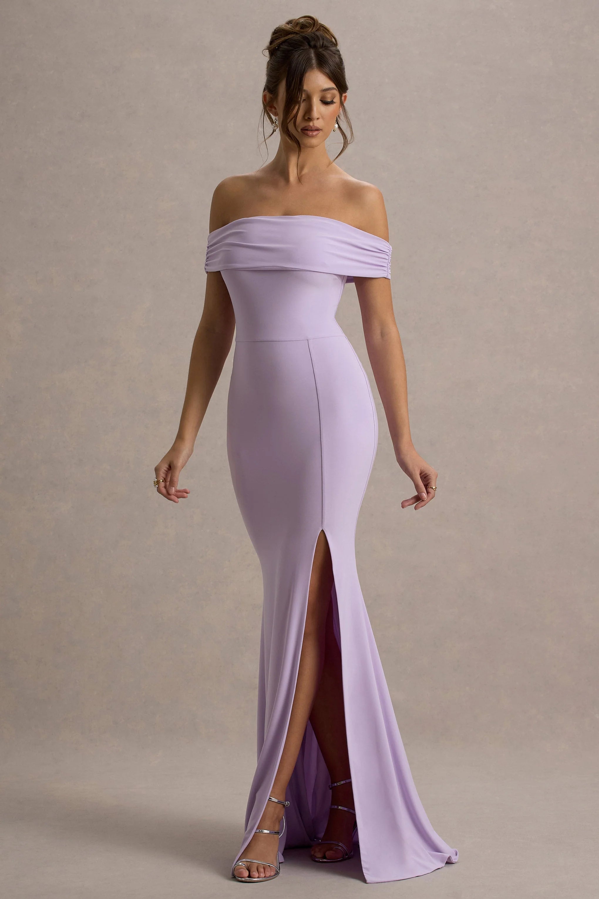 Both timeless and sophisticated, this lilac maxi dress is a must-have for any formal wardrobe. Featuring an elegant bardot neckline and striking high-leg split, this floor-sweeper is perfect for any black tie event you may have coming up. Try styling Law Of Attraction with a sleek bun to show off its stunning design.