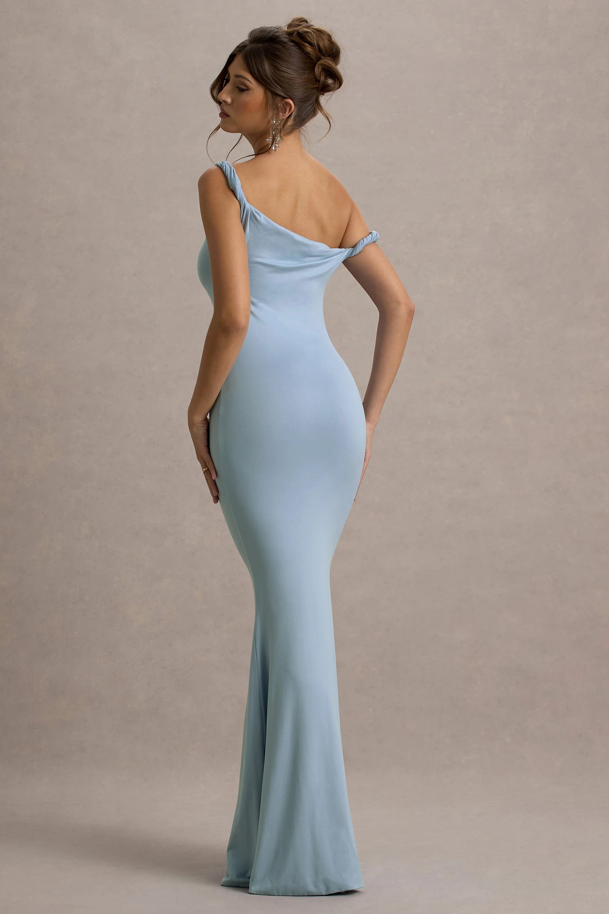 The latest must have maxi of the season is Lita. This maxi dress has been cut in a light blue shade of our premium stretch jersey that hugs every curve. Boasting a twisted asymmetric neckline, style this stand-out staple with a tousled bun and some gold accents for a classic look.