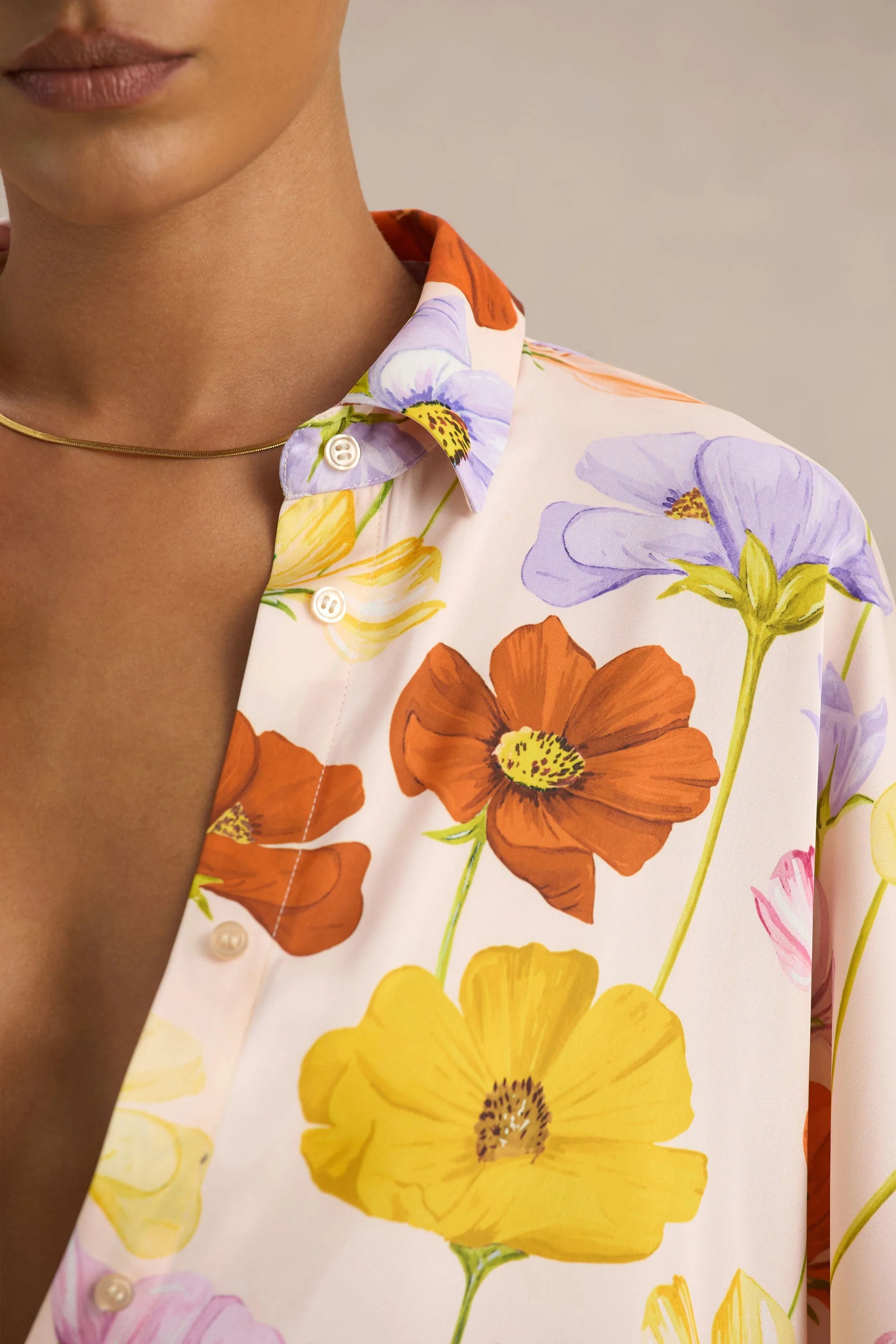 Bold and bright, our Lolite shirt is the perfect way to elevate your next outfit. Designed in our premium satin for an elegant finish, in a striking bright floral print that'll turn heads. Completed with a standard collar neckline, adding gorgeous structure, that beautifully contrasts the relaxed feel of this cropped, boxy style shirt. Lolite can be styled day-to-night and is a must have in your wardrobe this season.