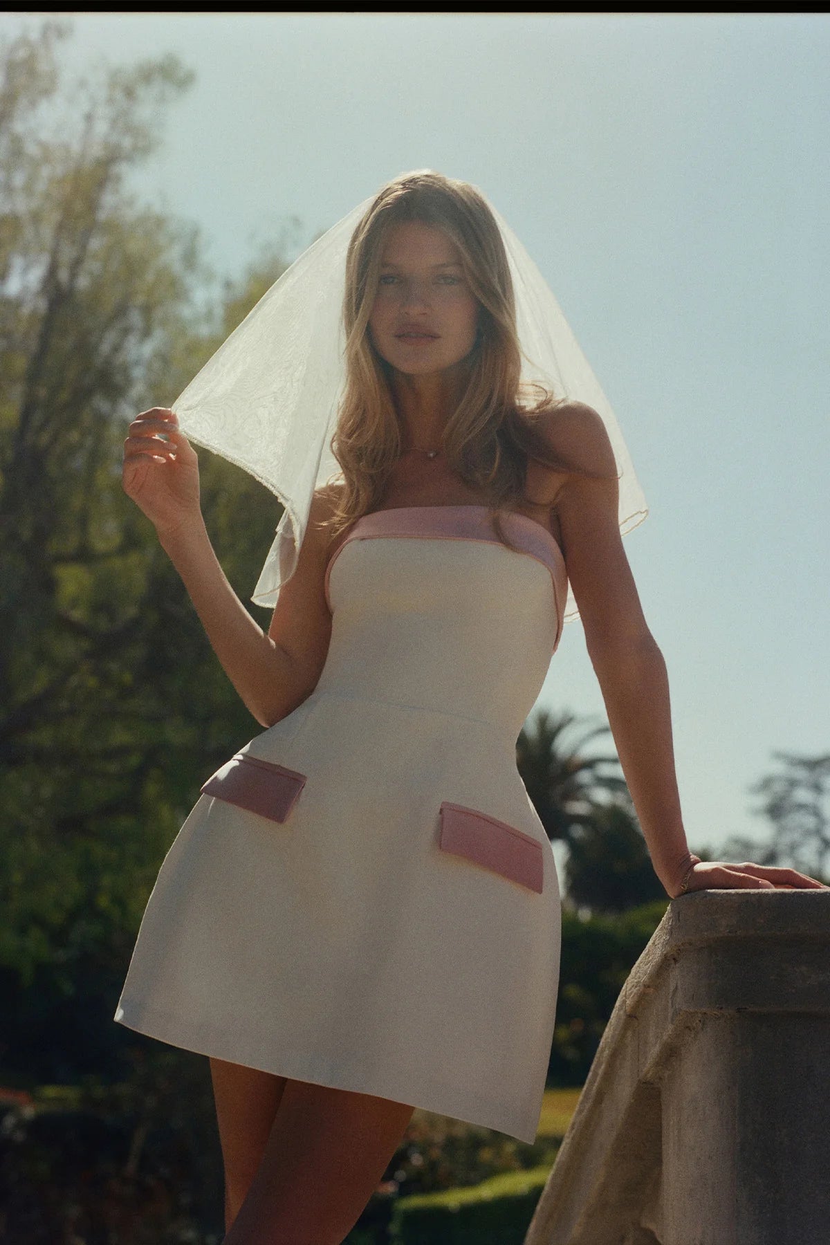 Dress for the occasion with the versatile Lucienne Skort Romper. Made for having fun, this strapless one-piece features charming blue on the neckline and pocket flaps. Style with kitten heels for a fresh and playful look.