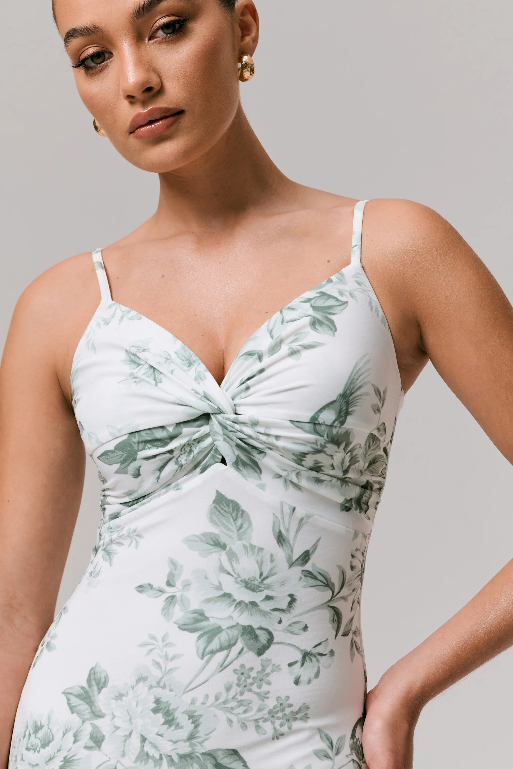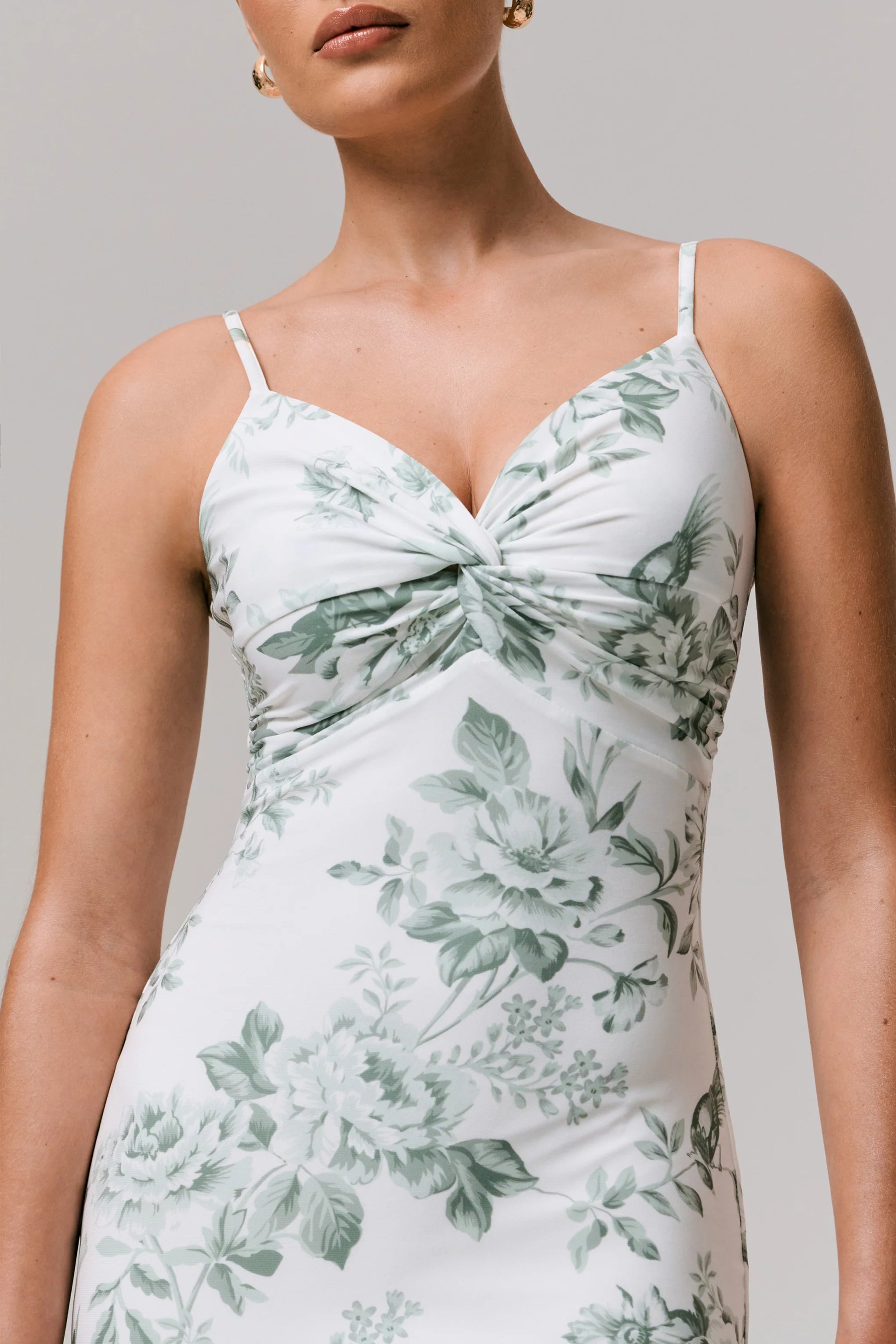 Say hello to the maxi of the season Luz, a floral and feminine must have. Curated in our premium stretch jersey, for a flattering and sculpting finish, in a delicate green porcelain print. This piece is finished with a sweetheart neckline, which features a tie knot detail, and an open back for a flirty flare. The perfect dress for summer weddings or upscale events paired with dainty accessories.