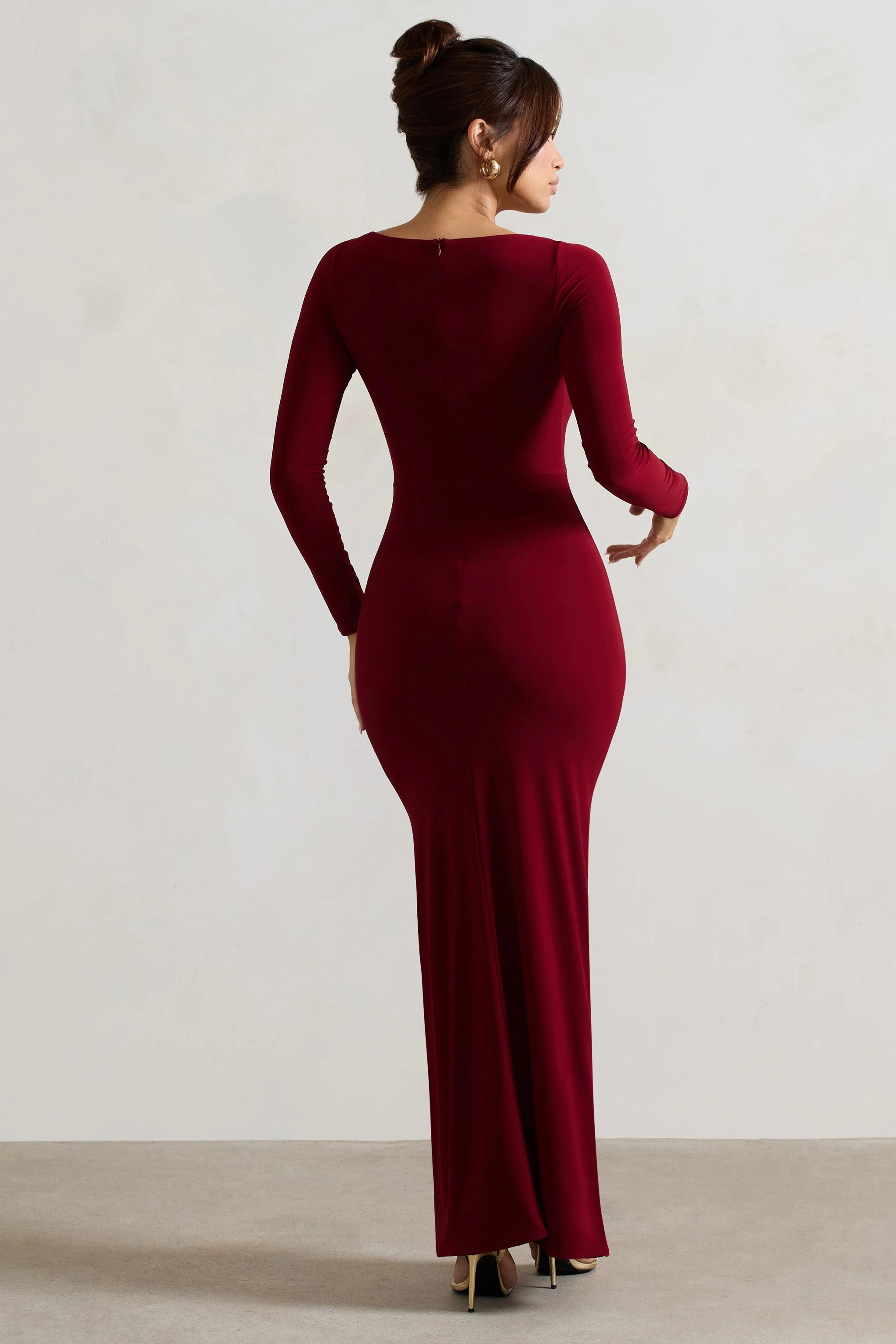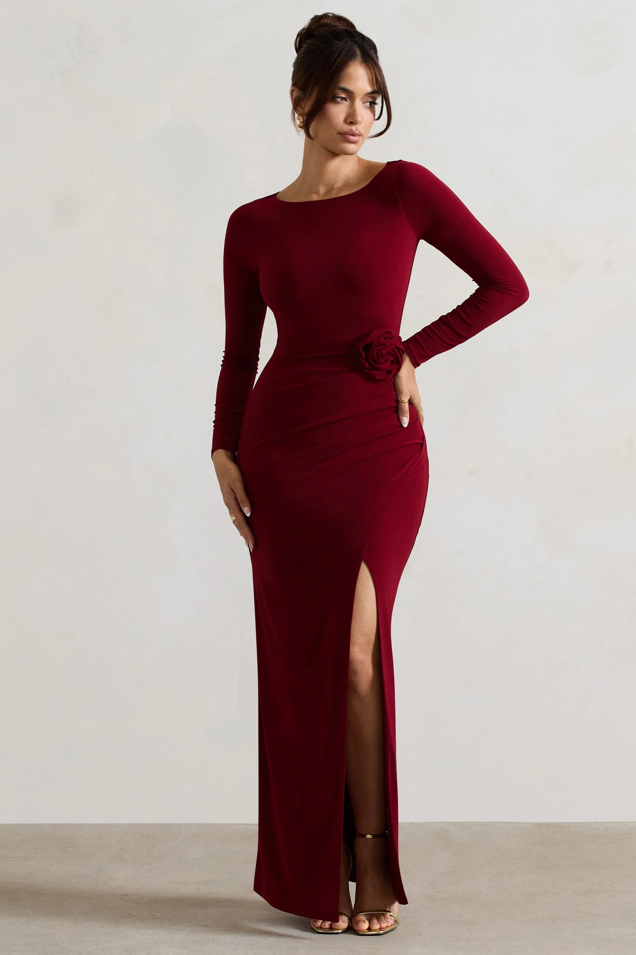 The showstopping Makayla, presented in a berry premium jersey, will become your fashion constant for all those black tie events. This maxi dress showcases just the right amount of skin with its thigh split detail while maintaining a sophisticated look. Team Makayla with our glamourous Bold Soul platform sandals to complete your look.