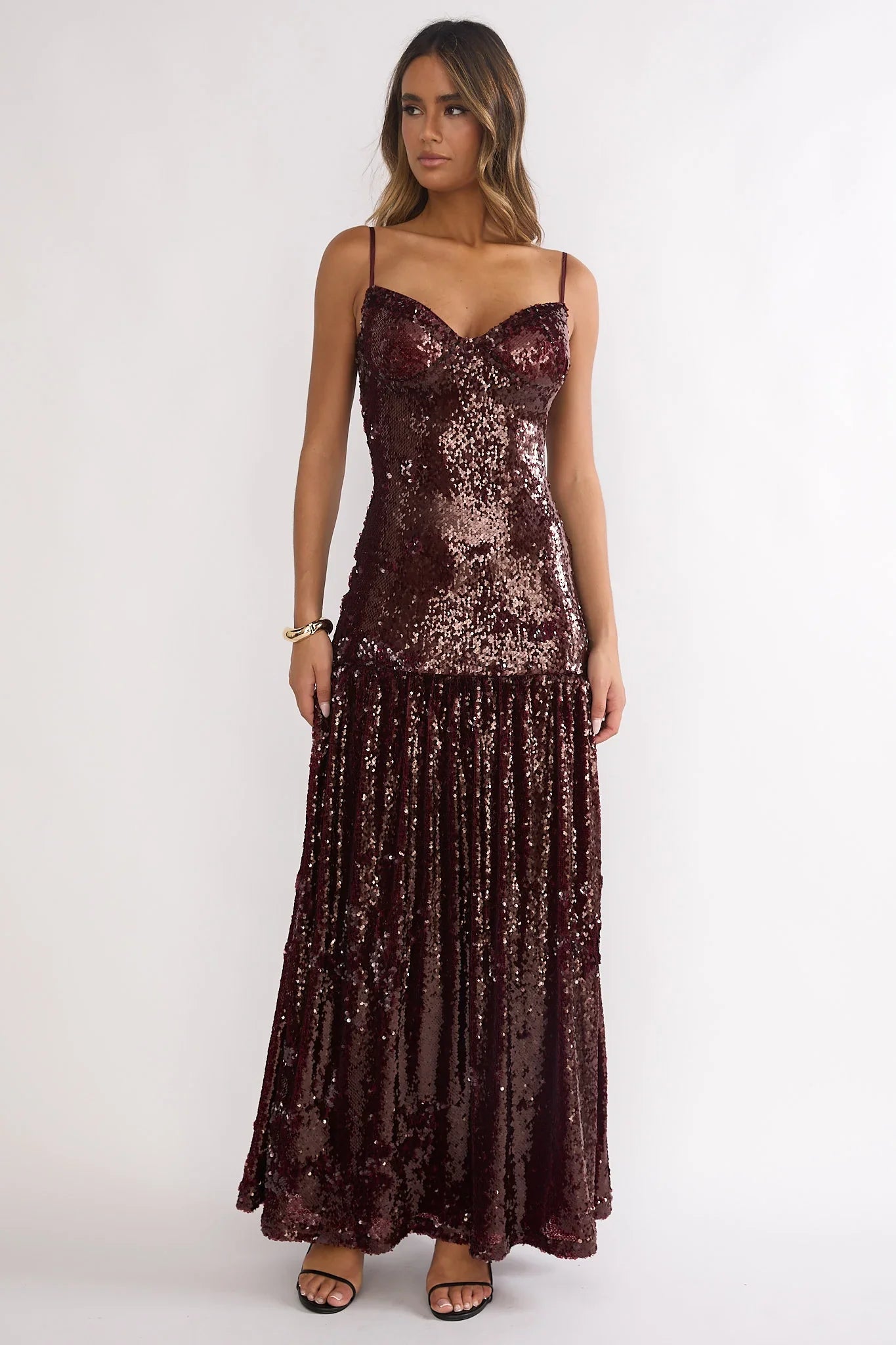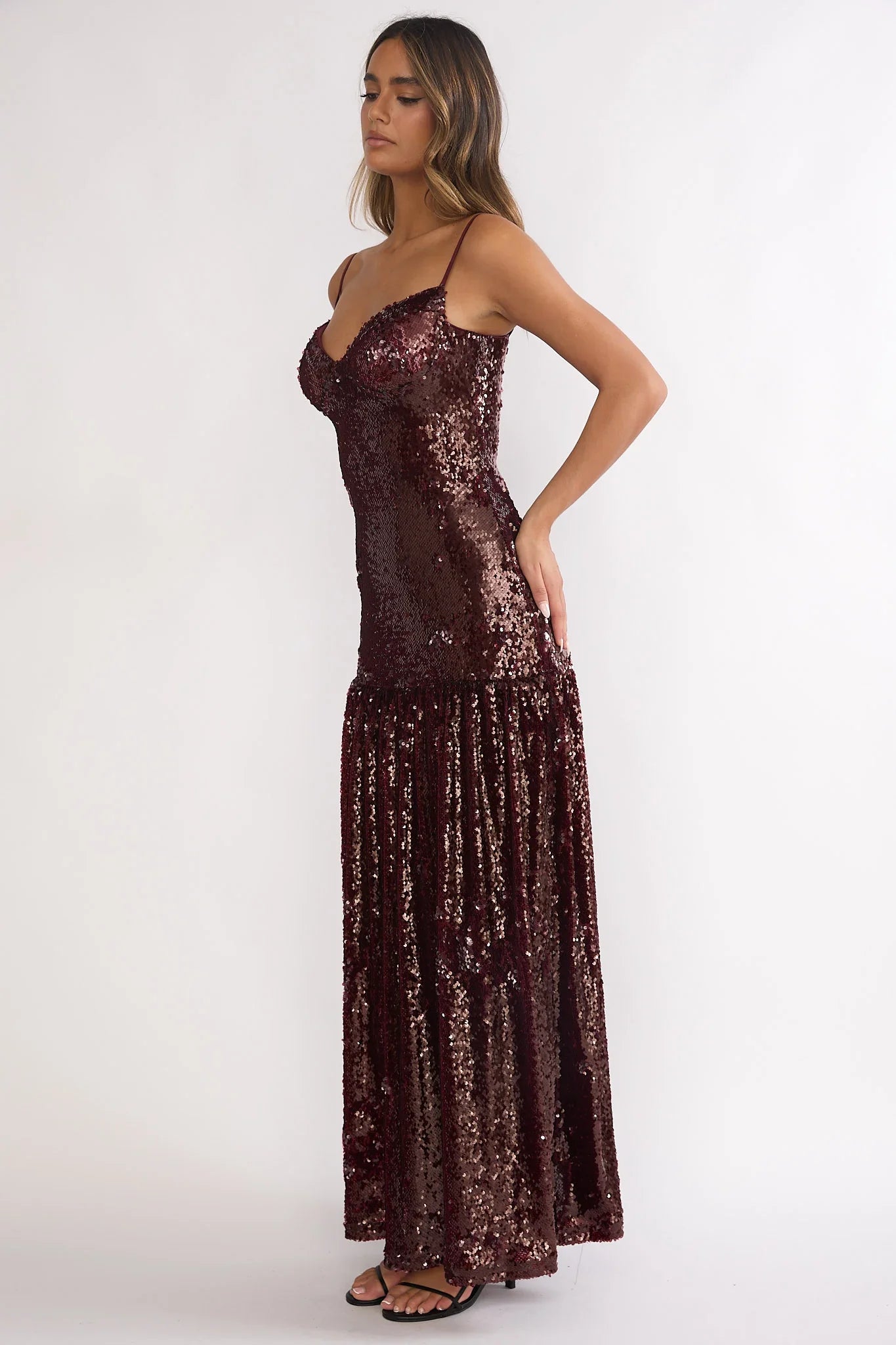 Make them stop and stare in our stunning Miller maxi dress. It features gorgeous sequins throughout and a drop waist. Wear it to a wedding or special occasion teamed with silver, strappy heels and a clutch for an unforgettable look.